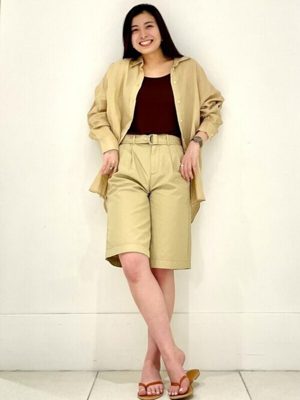きれいめ軸のニューフェイス!これが大人のハーフパンツコーデのご紹介です! 大人が着れるハーフパンツが入荷しました!! ウエストマークがあるので、INして着ることで一気にスタイルアップできます◎ 今季はニュアンスのあるベージュを、ワントーン馴染ませ配色でレイヤリングするコーデが新鮮です。 色の濃淡や、素材感で、ベージュならではのやわからさと、着映え感を両立できます。 こちらのショーツとリネンシャツをあわせれば、セットアップ風を楽しむことができます。 【Gapストア 池袋東武店 / Kana】