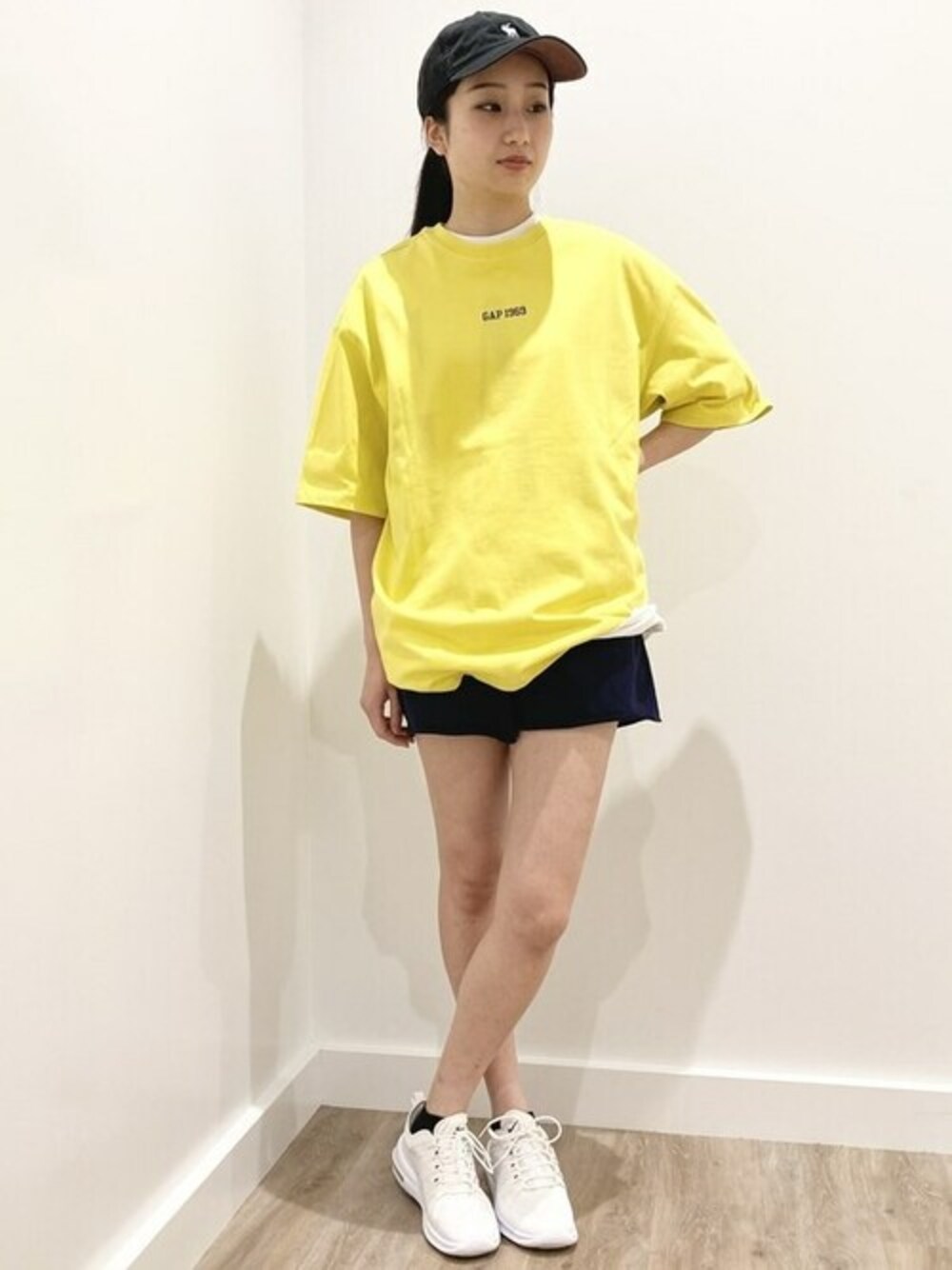 バックプリントのロゴがきいてるイエローのTシャツとスウェットのショーツをあわせミックスコーデにしました。 ヘビーウェイトTシャツは、しっかりした素材で白単品で着用しても透け感を気にせず便利です! スウェットのショートパンツはジム使いや、ルームウェアにも活用できる着回しアイテムです! 【Gapストア コースカベイサイドストアーズ店 / Honami】