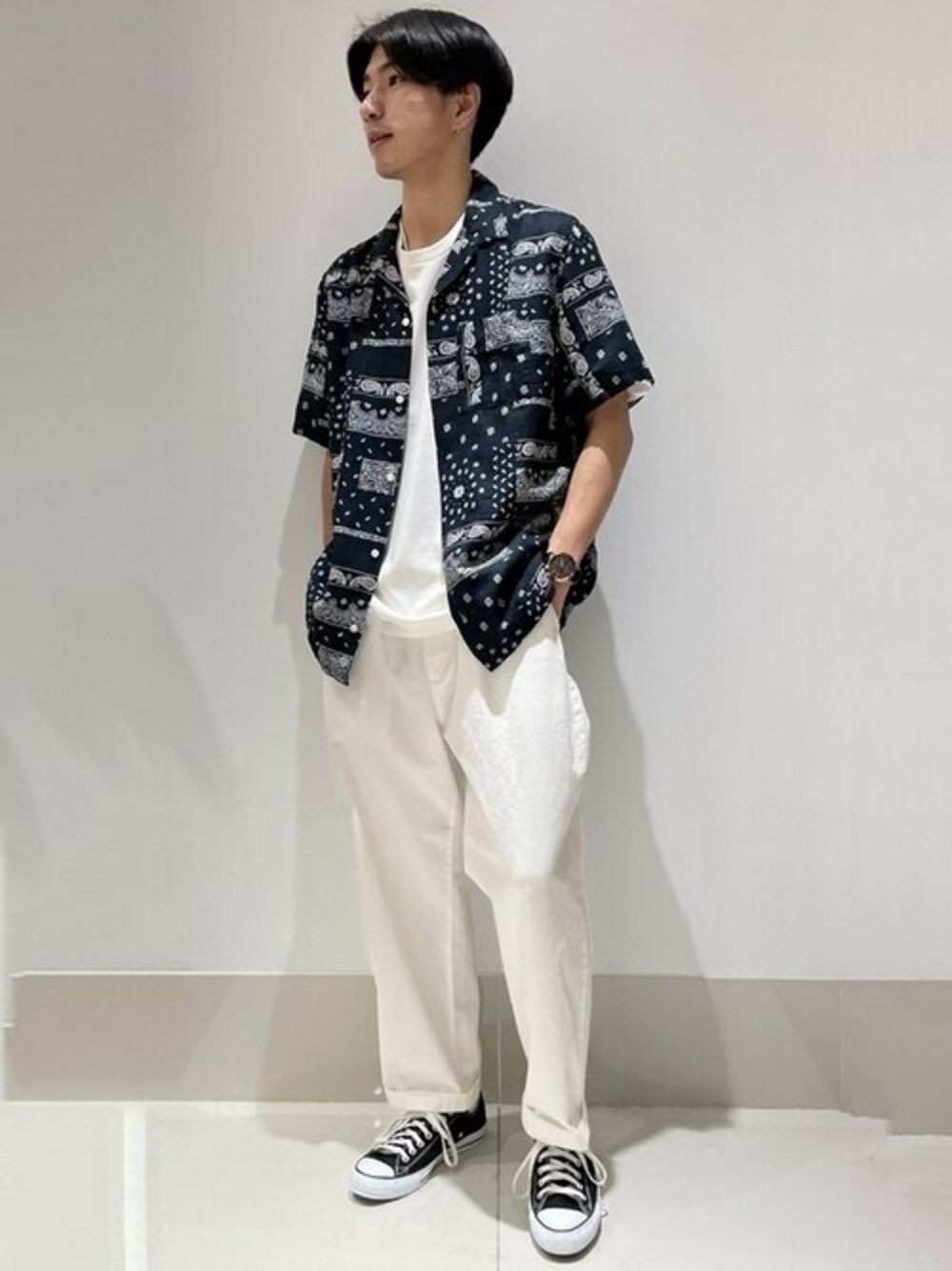 90年代リバイバルコーデのご紹介です。 パンツは、イージーテーパードを使ったアレンジスタイルです。 トップスのプリントリネンシャツのダボっとしたシルエットも、洗練されたデザインを使う事で肩がドロップしながらも、丈はジャスト~短めのややコンパクトなシルエットになりおしゃれに着こなせます。 今季の夏アイテムに是非取り入れてみて下さい。 【Gapストア たまプラーザ テラス店 / Kazuki】