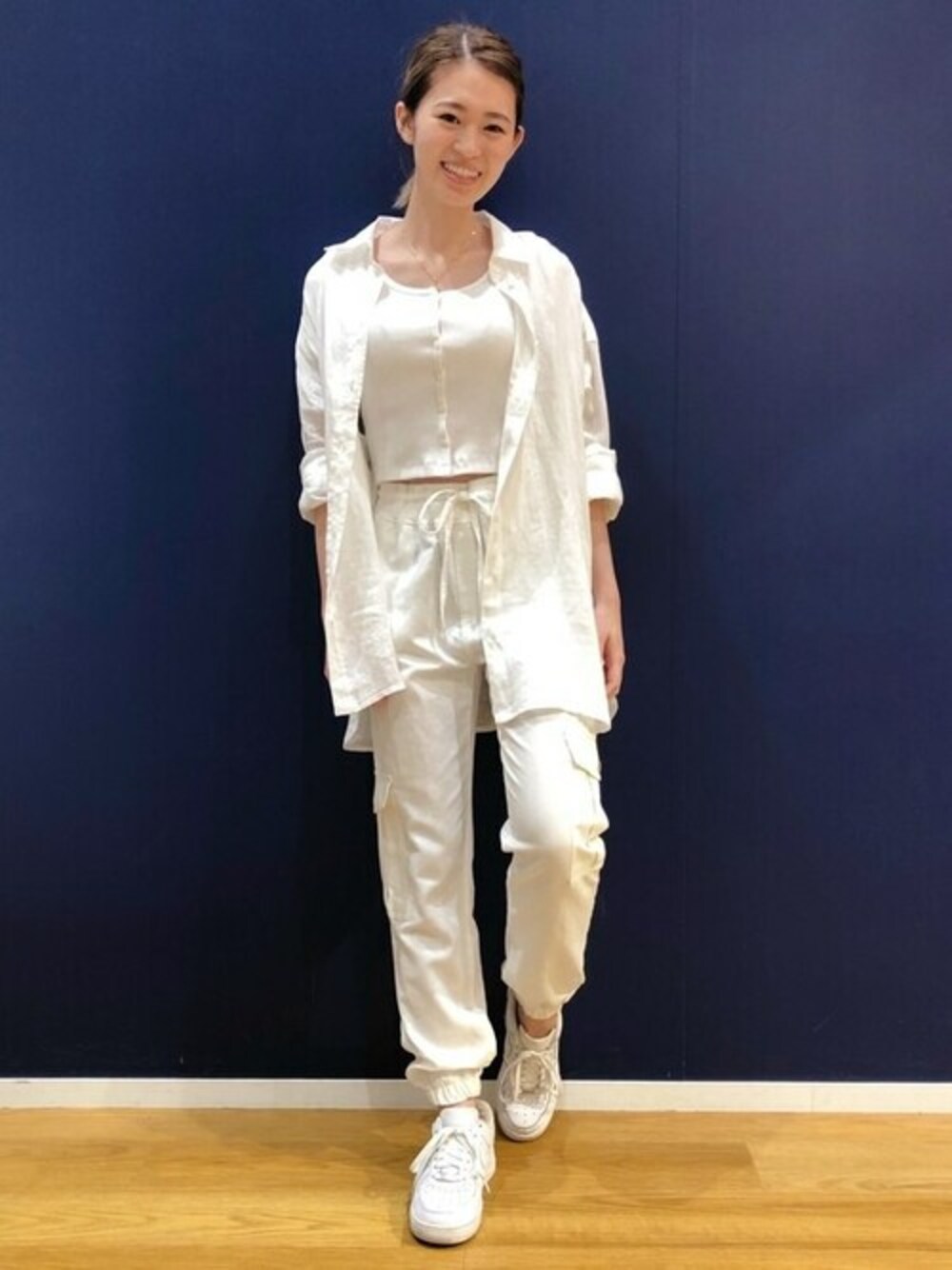 リネンで作るオールホワイトコーデのご紹介です。 ショート丈のカットソーとジョガーパンツのカジュアルな合わせです! そこに大人っぽい印象のリネンシャツを合わせ、カジュアルになり過ぎないようにコーディネートしました。 素材感とカラーの統一でよりまとまりのある印象になります。 【Gapストア ららぽーと湘南平塚店 / Nakamura】