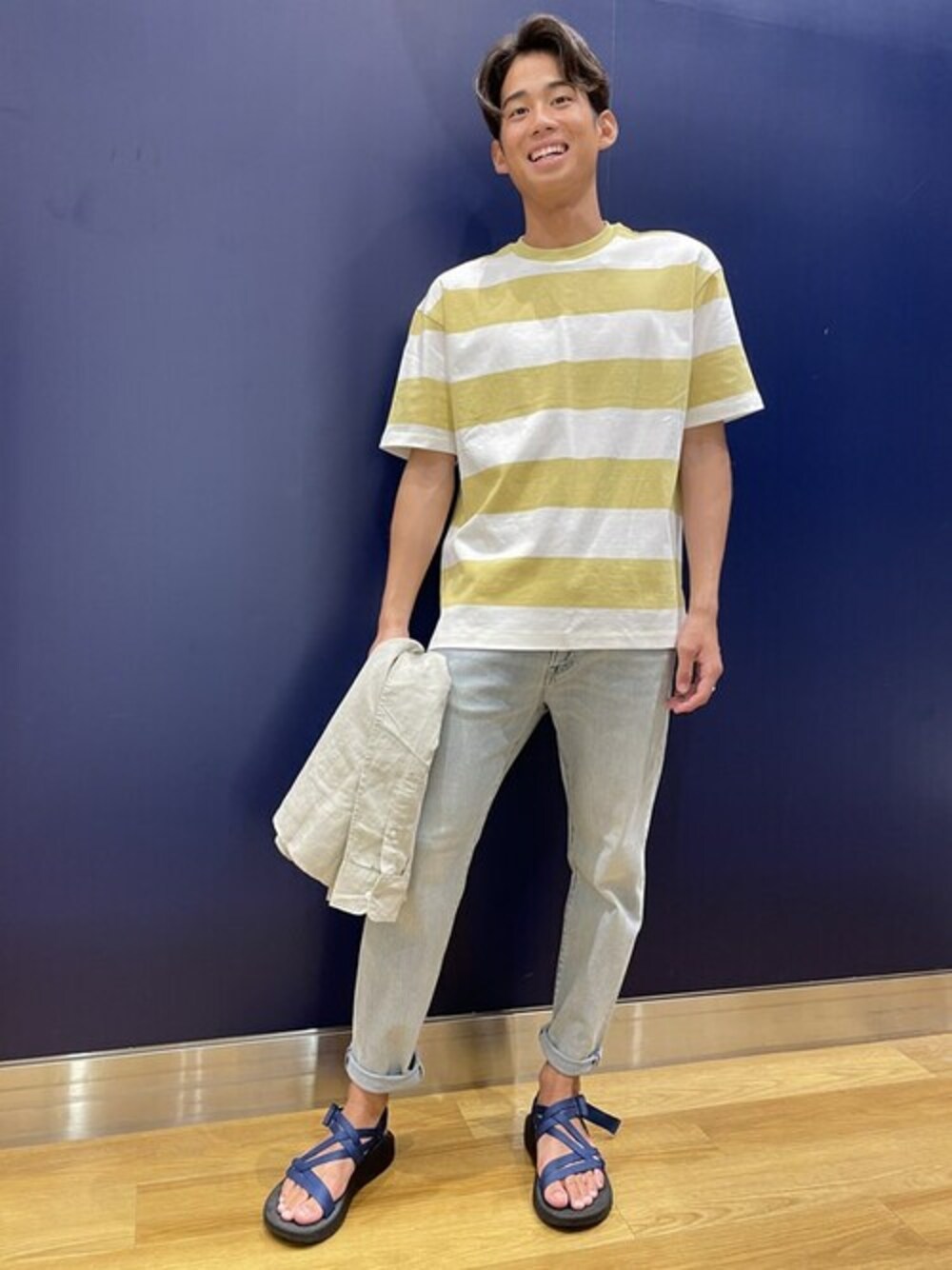 177cm 【Gapストア イオンモール沖縄ライカム店 / Nagayoshi】 爽やかボーダースタイルのご紹介です! 今季、色合いがキレイなボーダーのTシャツが入ってます♪ 落ち着いたイエロー✖️ホワイトなので、どなたでも挑戦できるカラーだと思います。一枚でサマになります!! ガシガシ洗っても、型崩れしづらい素材なのも嬉しいポイントです! デニムも涼しげなカラーと素材なので、夏にピッタリ! 短めの丈なので、身長があまり高くない方にもオススメです。 リネンコットンシャツは毎年定番で使えるので、一枚持っていると便利ですよ!