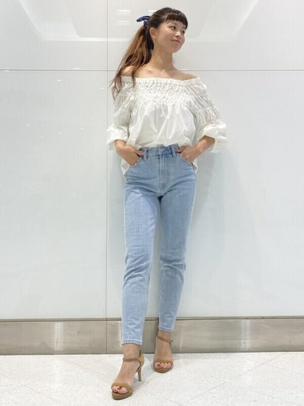 166cm 夏のブラウスコーデのご紹介です。 ギャザーがたっぷりで、オフショルダーにもなり2wayで着られます。 ボリュームがたっぷりなので、ボトムスはスッキリとしたシルエットのアイテムがオススメです! マムジーンズは程よくゆとりがありつつもスッキリとしたシルエットで大人気です! 【Gapストア 自由が丘MAST店 / Takashima】