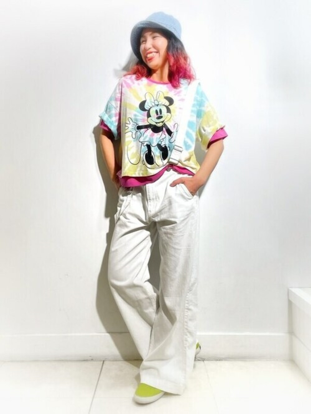 160cm 夏らしくテンション上がる大人ディズニーコーデはいかがですか? 今季トレンドのタイダイ柄によって、ミニーちゃんも子供っぽく見えないですし、インナーにハッキリした色を合わせたことで、さらに華やかになります☆ パンツは今年人気の、オーバーオール。白なので一気に夏らしくなります。 1つ上のサイズ感にすると、よりキレイなシルエットになります。 小物もTシャツの中に入ってる色を加えて、いろんなバージョンで楽しんではいかがですか? 【Gapストア 丸井錦糸町店 / Noriko】