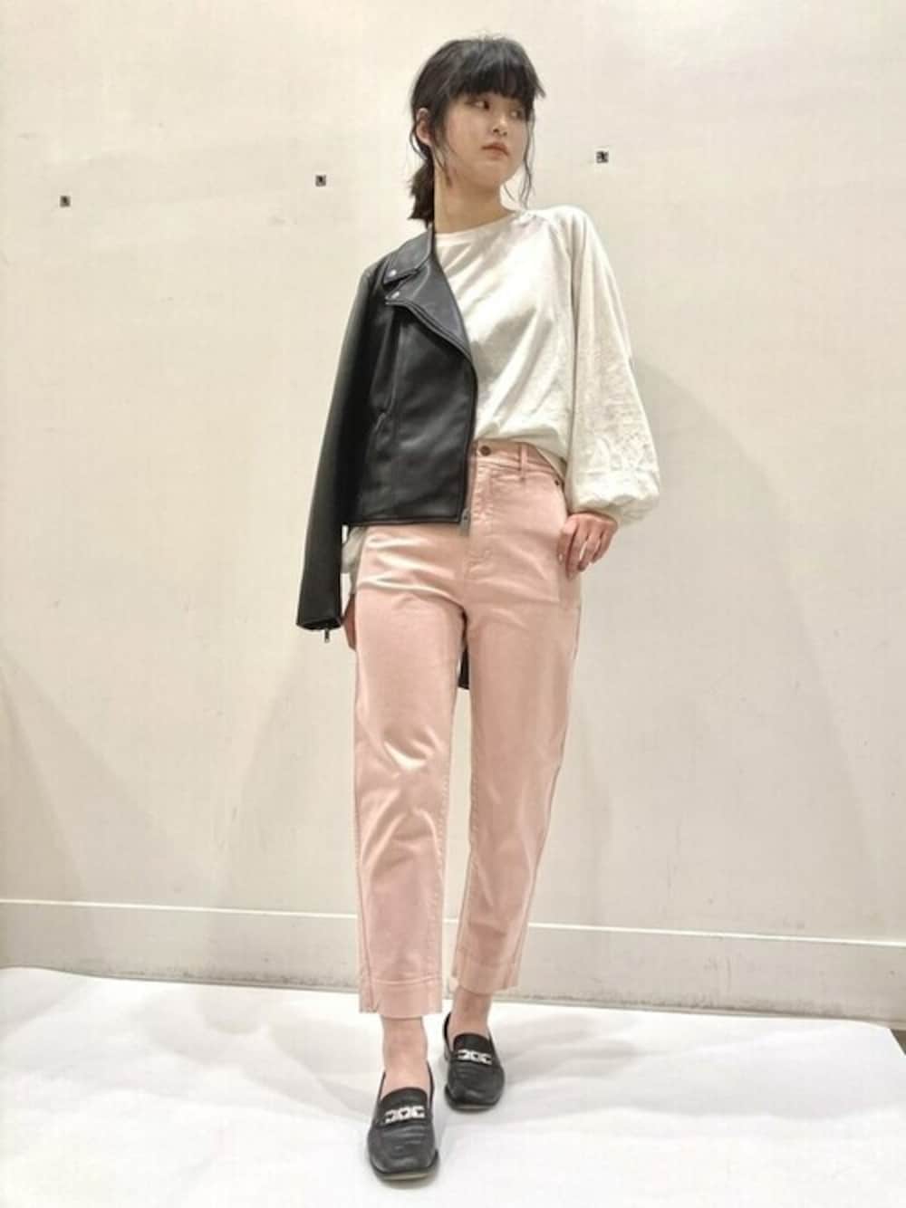 165cm パススリーブのTシャツとバレルボトムスでトレンド感満載にまとめました。 甘すぎないようレザーをアクセントにコーデを組んでいます。 カラーネックで袖にボリュームがあり、ウルトラソフトのTシャツは肌触りが良く秋から長く重宝できるアイテムです! 【Gapストア 新静岡セノバ店 / Wada】