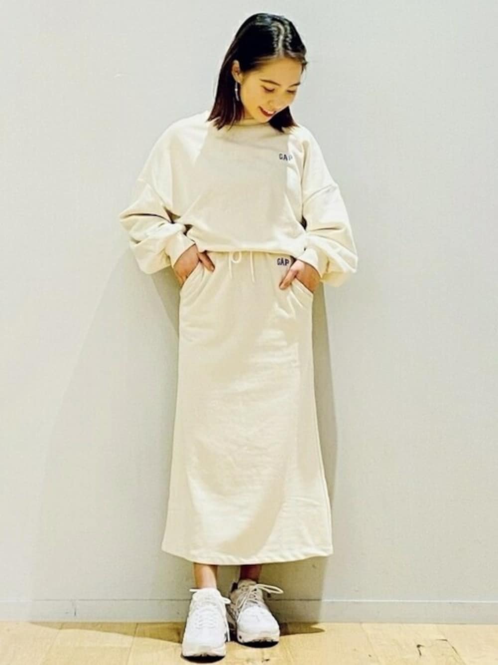 156cm 大人気のスカートのセットアップに新色が登場しました! スウェットのトップスは、バルーンスリーブが特徴で、フワッとした袖口がたまらないかわいさを。 また、スカートもタイトすぎずゆるすぎない絶妙なスタイル。 くすんだホワイトなので、透けも気になりません! 【Gapストア 新宿フラッグス店 / Risa】