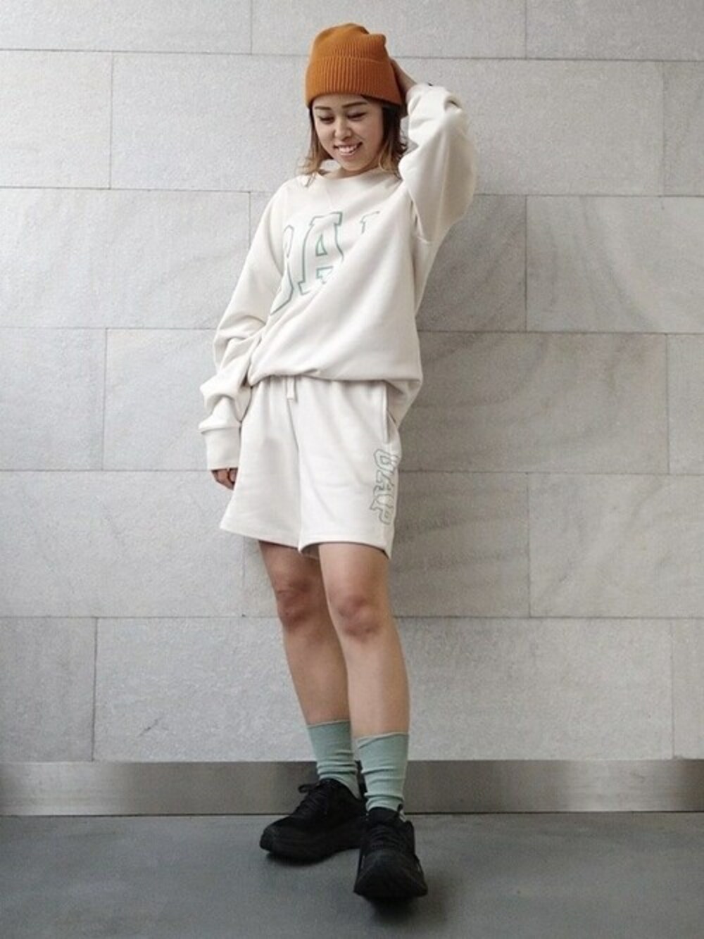 GapJapan(GAP Japan Official Online Store | 公式GAP通販サイト)のスウェット「オーバーサイズ GAPロゴ クルーネック スウェット」を使ったコーディネート