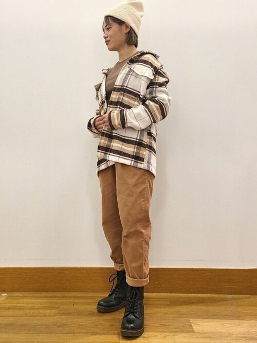 【ブラウンパンツコーデ】 ブラウンのパンツには全体をブラウンのトーンでまとめるのがオススメ! メンズのチェックシャツはいろいろ使える万能アイテム! 【Gapストア トナリエキュート つくば店 / Saki】 【スタッフ着用サイズ】 シャツ:XS インナー:S ボトムス:0