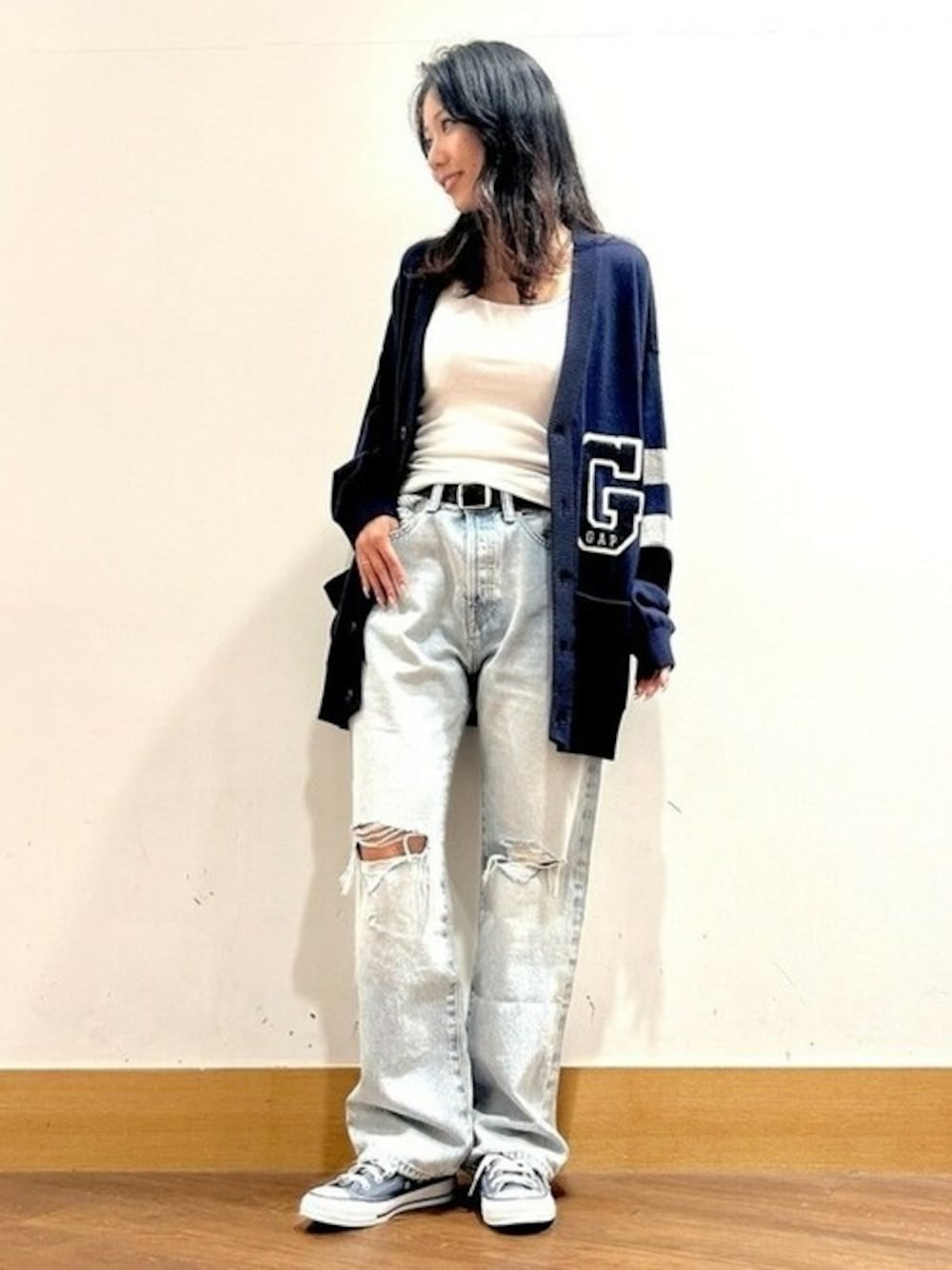 〖ロゴデザインが可愛い☆ユニセックスカーディガン〗 程よい開き具合で肩のシルエットも気にせず着られる、新作カーディガンが入荷してます☆ ホワイト·ネイビー·グリーンの3色展開となっております。 インナーのタンクトップもコットン素材で特殊加工してあるので、肌触り、着心地がとっても柔らかくて良いんですよ♪ カーディガンもサイズの選び方で雰囲気がとても変わりますね。 【Gap N.Kawabata】 【スタッフ着用サイズ】 トップス XS カーディガン L(メンズ) ボトムス 28インチ(Mens)