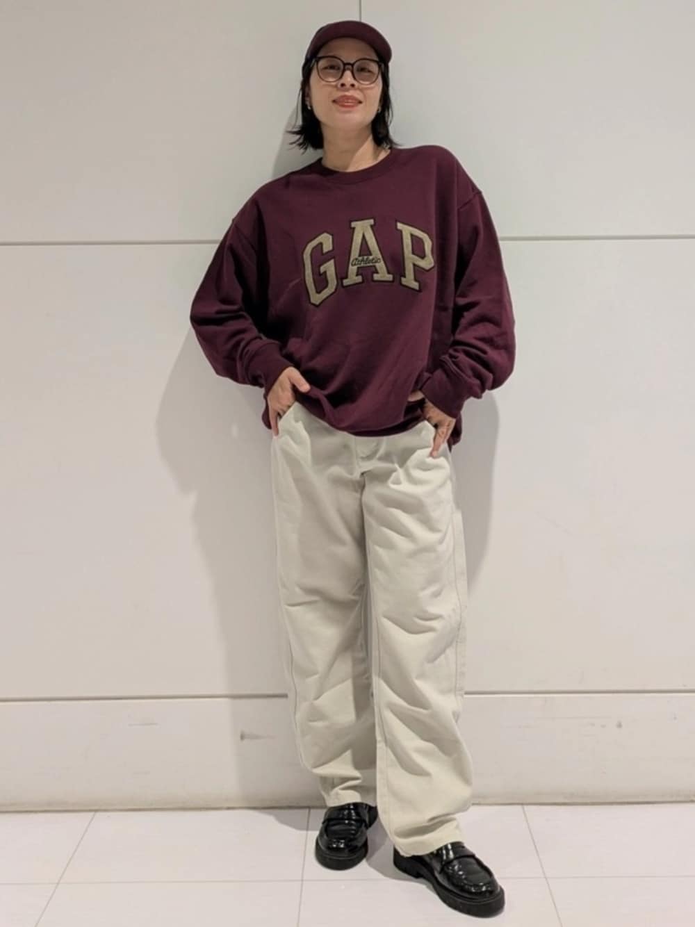 ヘビーウェイトのスウェットのご紹介。 人気色はえんじ色! オ―バ―サイズなので肩周りゆったり♪ カップルコ―デにもオススメです 【スタッフ着用サイズ】身長163cm スウェット:M デニム:30×30 キャップ:ワンサイズ 【Gapストア イオンスタイル大宮西口駅前店 / Sato】