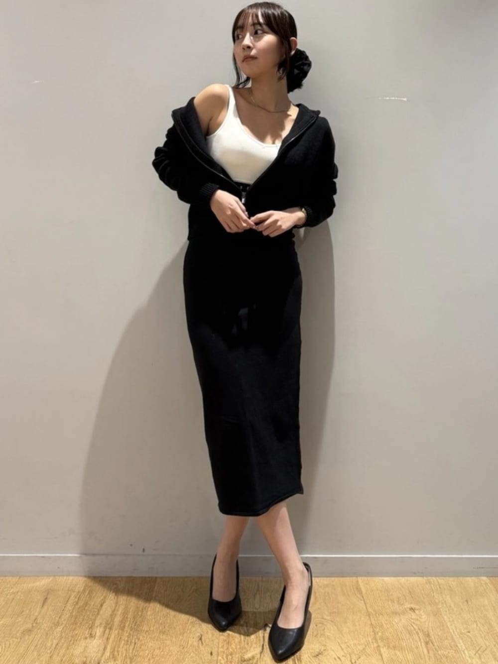 ニット素材のパーカーとタイトスカートでブラックセットアップ♡インナーをホワイトのスポーツブラにすることで抜け感をプラスしました! タイトにジャストサイズで着るためパーカーとスカートはどちらも1番小さいサイズを着用しています! 【スタッフ着用サイズ】身長164cm パーカー XXS スカート XXS インナー S 【Gapストア 新宿フラッグス店 / Hitomi】