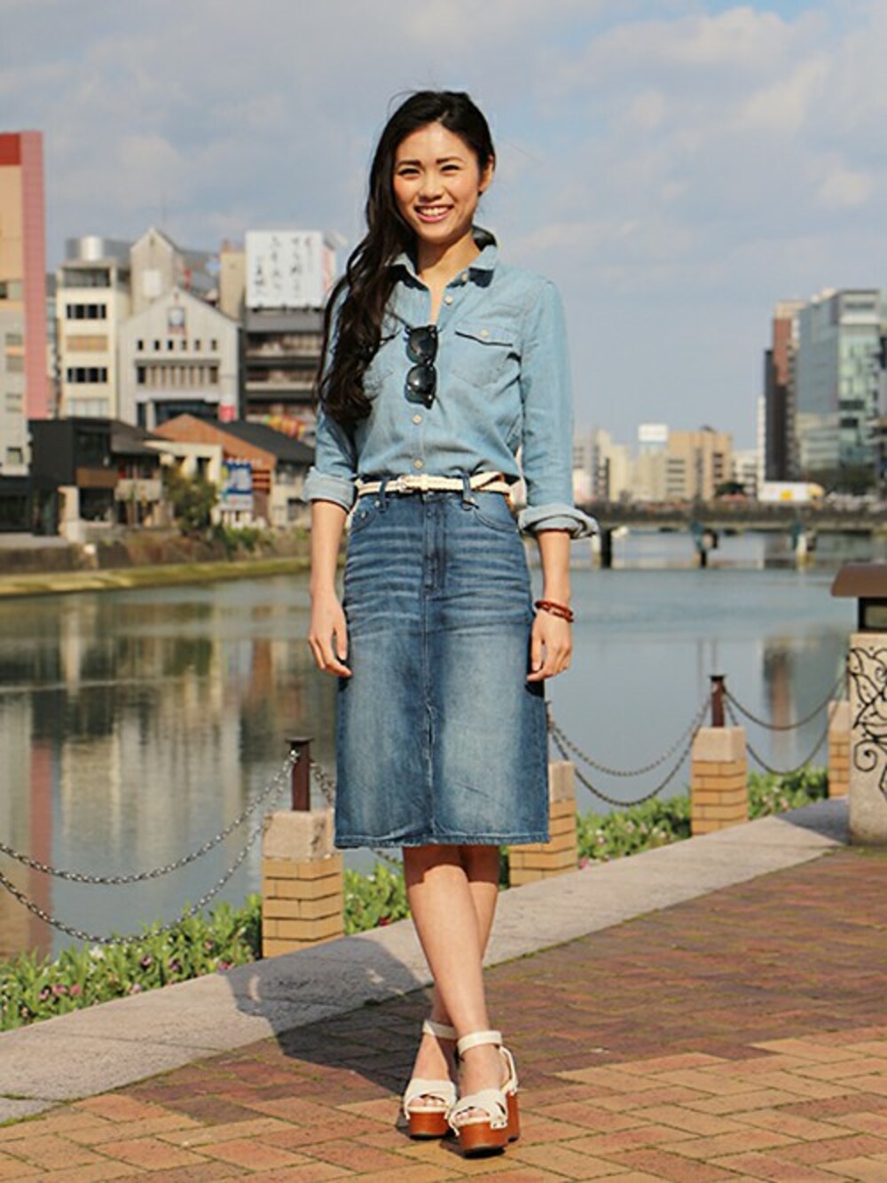 デニムオンデニムでカジュアルな海外セレブ風に。シャツもスカートもタイトなシルエットに胸元の開け具合とスカートのスリットでフェミニンさを意識。 デニムシャツ (Color:ライトブルー/¥6,900/ID:141315/着用サイズ:XXXS) デニムスカート (Color:インディゴ/¥5,900/ID:227339/着用サイズ:0) ベルト (Color:ホワイト/¥3,900/ID:988902/着用サイズ:XXS) その他:参考商品 スタッフ身長:162cm >福岡三越店 http://loco.yahoo.co.jp/place/g-aJEmicBo6iU/ >オンラインストアはこちら http://www.gap.co.jp/browse/subDivision.do?cid=5643