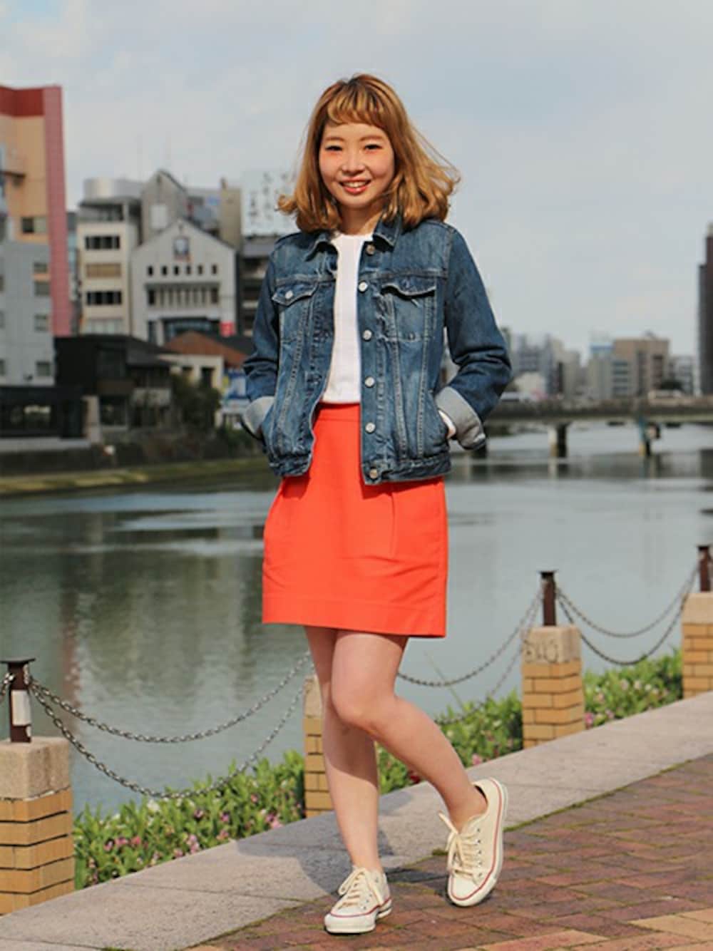 ビビットなオレンジスカートがデニムとマッチしたスポーティMIXコーデ。Gジャンはオーバーサイズでコクーンシルエットのスカートと好相性。 デニムジャケット (Color:インディゴ/¥9,900/ID:941572/着用サイズ:XS) セーター (Color:ホワイト/¥4,900/ID:224771/着用サイズ:XS) スカート (Color:オレンジ/¥5,900/ID:226234/着用サイズ:0) その他:参考商品 スタッフ身長:163cm >キャナルシティ博多店 http://loco.yahoo.co.jp/place/g-aJEmiaPzlPw/ >オンラインストアはこちら http://www.gap.co.jp/browse/subDivision.do?cid=5643