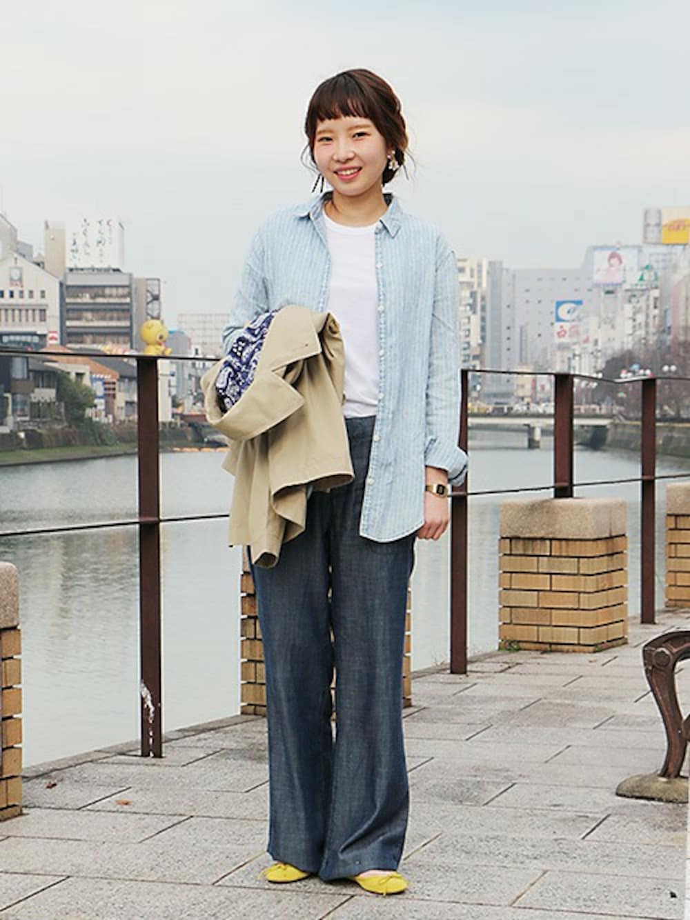 マリンテイストのボタンがアクセントのワイドデニムをポイントに、白Tとストライプシャツを合わせてヴィンテージマリンルックの完成。ショート丈トレンチは、思わずはっとするバンダナ柄裏地付きで華やかに。 アウター (Color:ベージュ/¥9,900/ID:177315/着用サイズ:XXS) シャツ (Color:ブルーストライプ/¥6,900/ID:180483/着用サイズ:XXS) Tシャツ (Color:ホワイト/¥1,900/ID:180165/着用サイズ:S) デニム (Color:ミディアムインディゴ/¥7,900/ID:130000/着用サイズ:0) シューズ (Color:イエローグリーン/¥5,900/ID:198694/着用サイズ:5) その他:参考商品 スタッフ身長:161cm >キャナルシティ博多店 http://mobile.gap.co.jp/stores/sp/store.php?shopId=36393839 >オンラインストアはこちら http://www.gap.co.jp/browse/subDivision.do?cid=5643 >GapストアスタッフコーデをWEARで見る(Women) http://wear.jp/gapjapan/ >GapストアスタッフコーデをWEARで見る(Men) http://wear.jp/gapjapanmen/