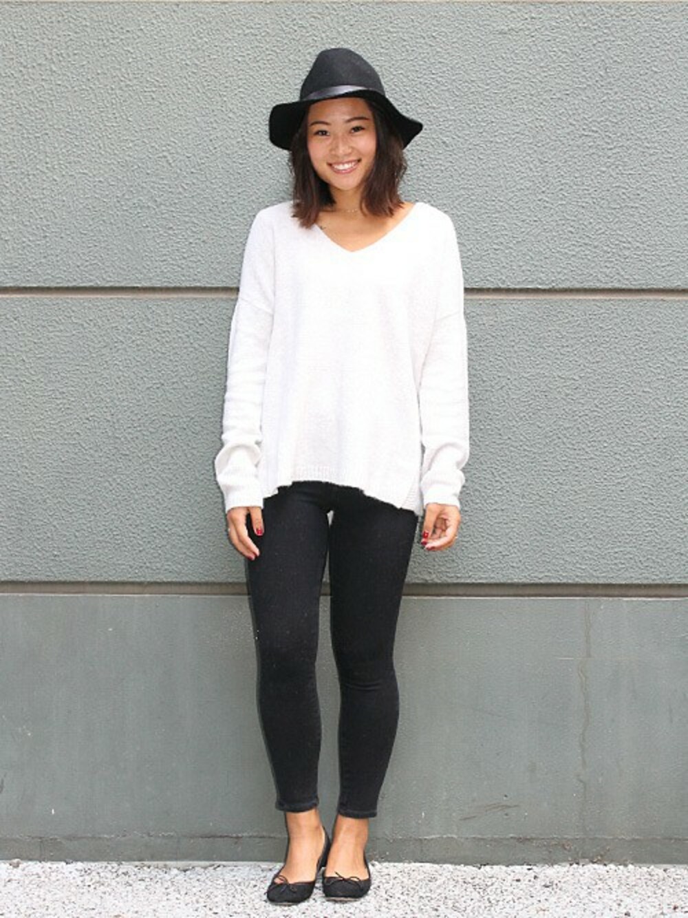 秋のマストアイテム白ニットはゆったりシルエットで今年らしいものをセレクト。Vネックでデコルテがキレイに見え、スキニーパンツでバランスUP。 セーター (Color:ホワイト/¥4,900/ID:324299/着用サイズ:S) デニム (Color:ブラック/¥9,900/ID:240945/着用サイズ:25) バレエシューズ (Color:ブラック/¥4,900/ID:198694/着用サイズ:7) その他:参考商品 スタッフ身長:159cm >フラッグシップ原宿 http://mobile.gap.co.jp/stores/sp/store.php?shopId=37533953 >オンラインストアはこちら http://www.gap.co.jp/browse/subDivision.do?cid=5643 >GapストアスタッフコーデをWEARで見る(Women) http://wear.jp/gapjapan/ >GapストアスタッフコーデをWEARで見る(Men) http://wear.jp/gapjapanmen/