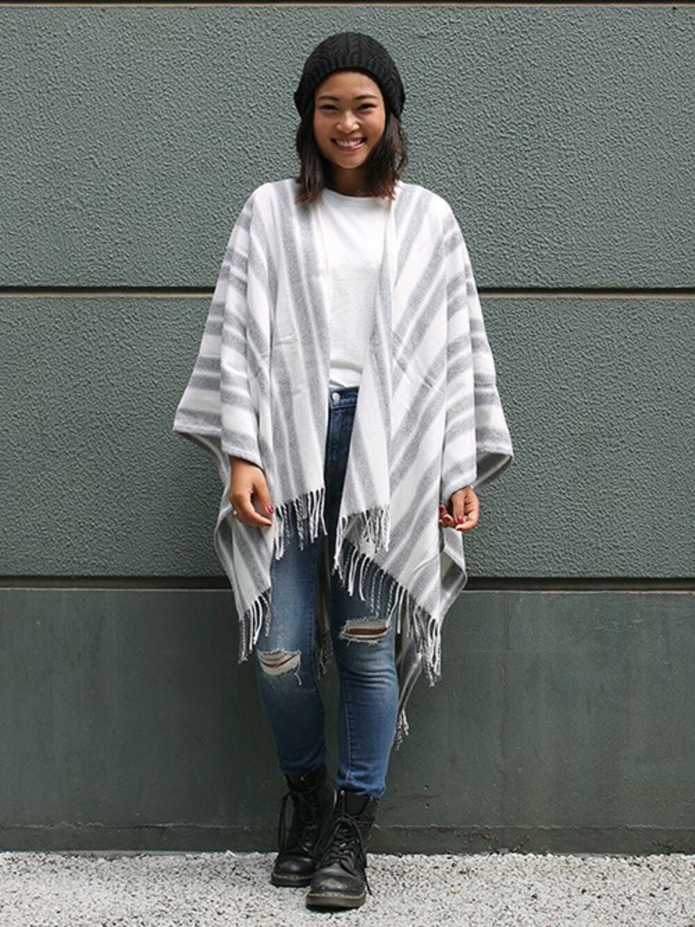一押しのセーターポンチョを使った秋の最旬スタイル。白ニット×デニムの定番スタイルもポンチョを羽織るだけで今年っぽく変化。小物は黒で締めました。 ポンチョ (Color:ホワイト/¥12,900/ID:355871/着用サイズ:XS-S) ニット (Color:ホワイト/¥3,900/ID:241961/着用サイズ:XS-S) ガールフレンドデニム (Color:ミディアムインディゴ/¥9,900/ID:240858/着用サイズ:23) その他:参考商品 スタッフ身長:159cm >フラッグシップ原宿 http://mobile.gap.co.jp/stores/sp/store.php?shopId=37533953 >オンラインストアはこちら http://www.gap.co.jp/browse/subDivision.do?cid=5643 >GapストアスタッフコーデをWEARで見る(Women) http://wear.jp/gapjapan/ >GapストアスタッフコーデをWEARで見る(Men) http://wear.jp/gapjapanmen/