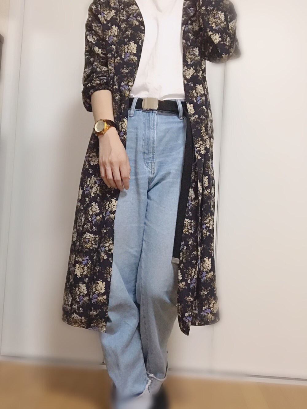 羽織る物がなかったので去年買ったジーユーのワンピースを👗 だいぶカジュアルな感じになりました😂