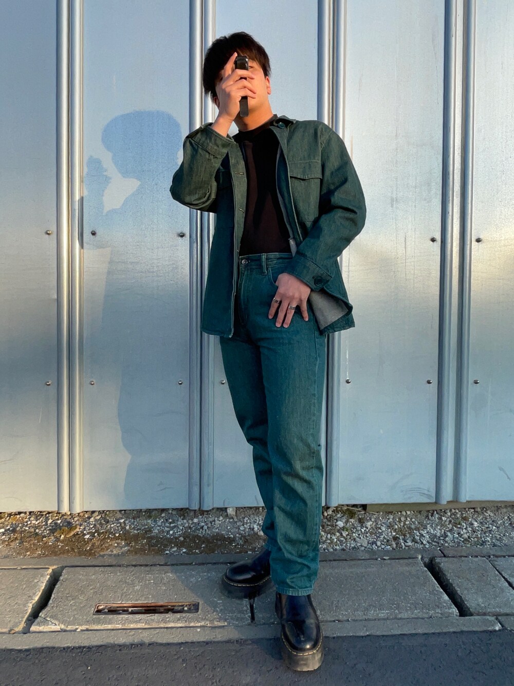 全身UNIQLOコーデ! 今回は、緑のデニムのセットアップになります🌱🌿 中のモックネックはどのコーデにも合う優れものです!