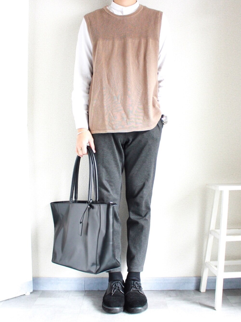 shogo🎩のベスト「綿麻クルーネックニットベスト」を使ったコーディネート