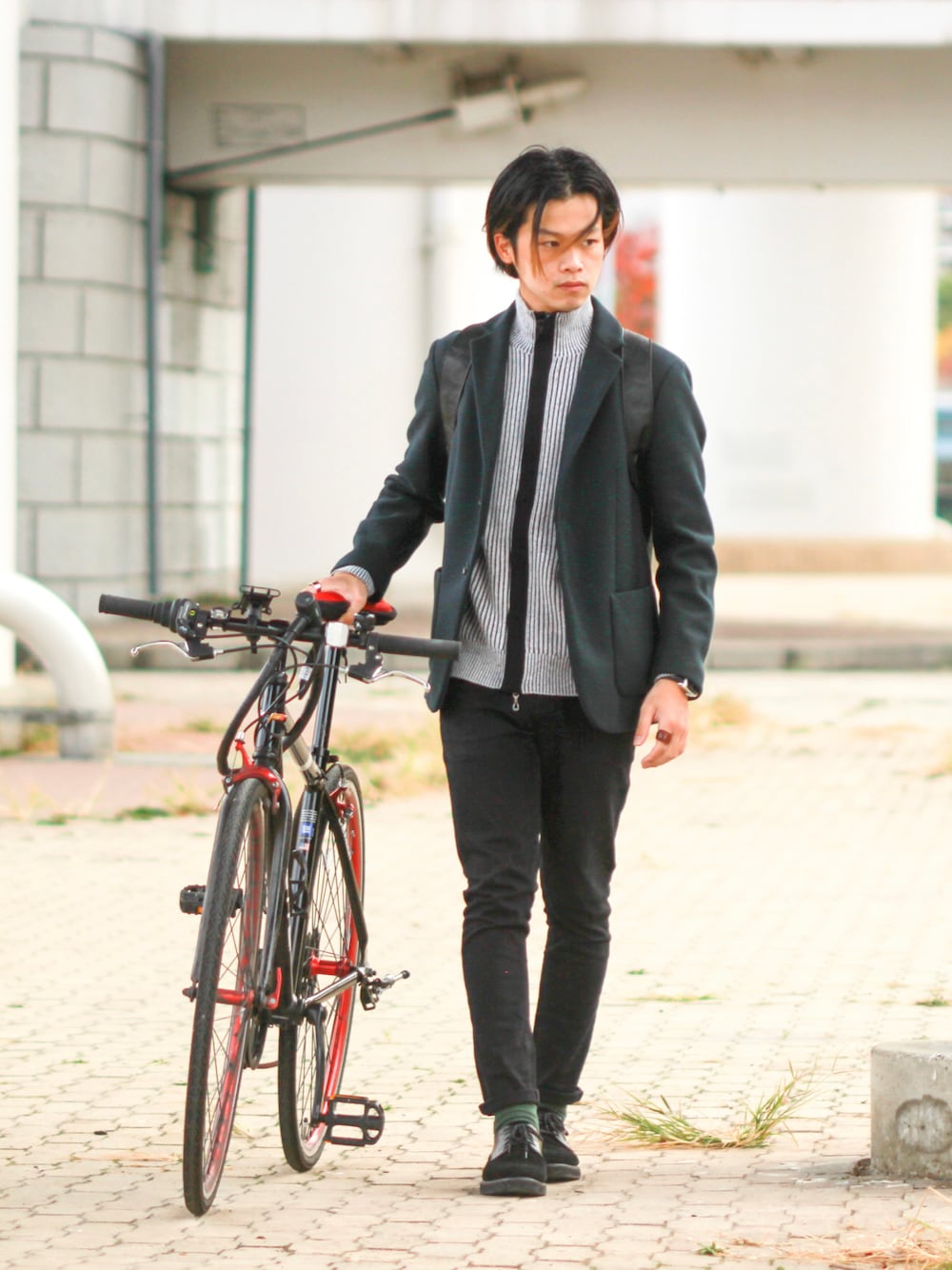 軽めの防寒コーデ 移動が大体自転車なので、ある程度の防寒対策は必須。 空気を含んで断熱してくれるメルトンジャケットとコットン混じりのリブニットブルゾンで温度調整。 ちょい寒でいきなりダウンに移行するのはちょっと俺には重たい。