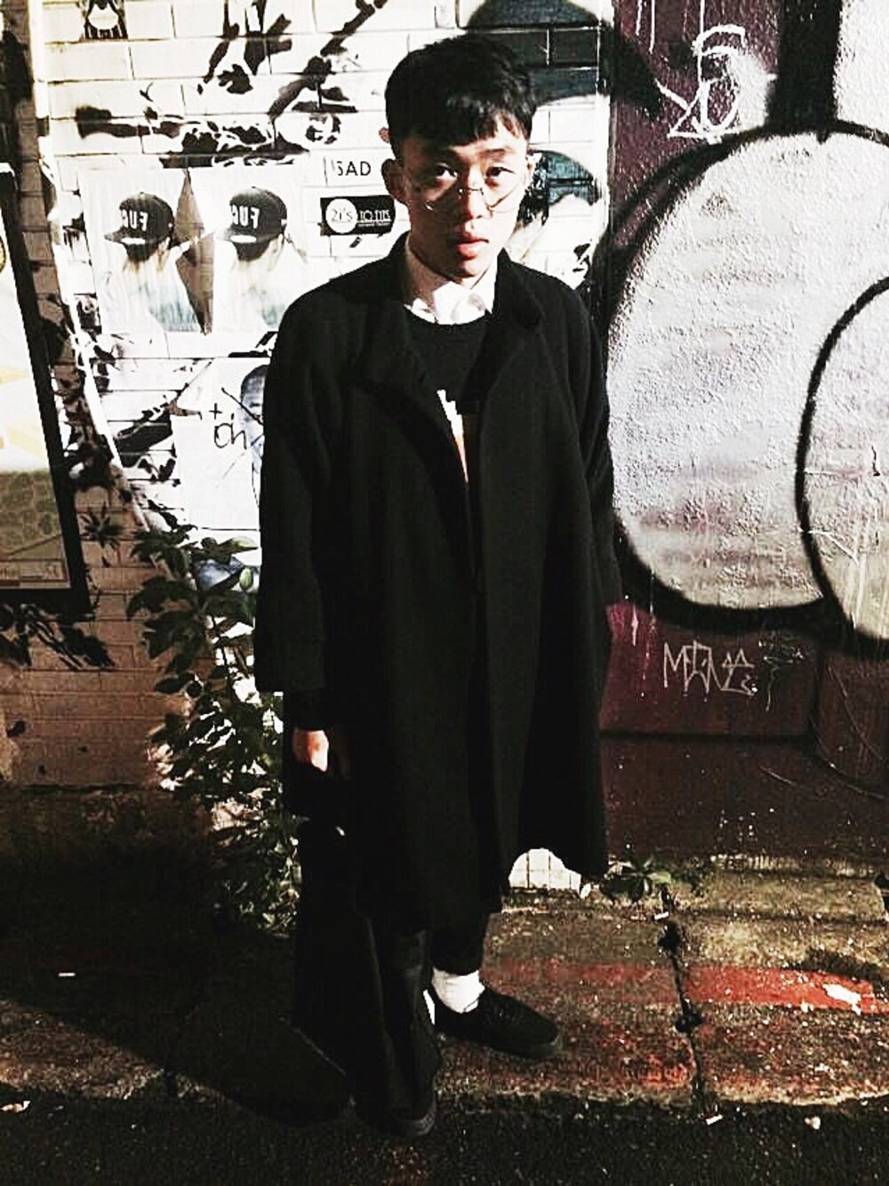 ブラック系のスニーカーを着用したメンズの冬コーディネートの1枚目の写真