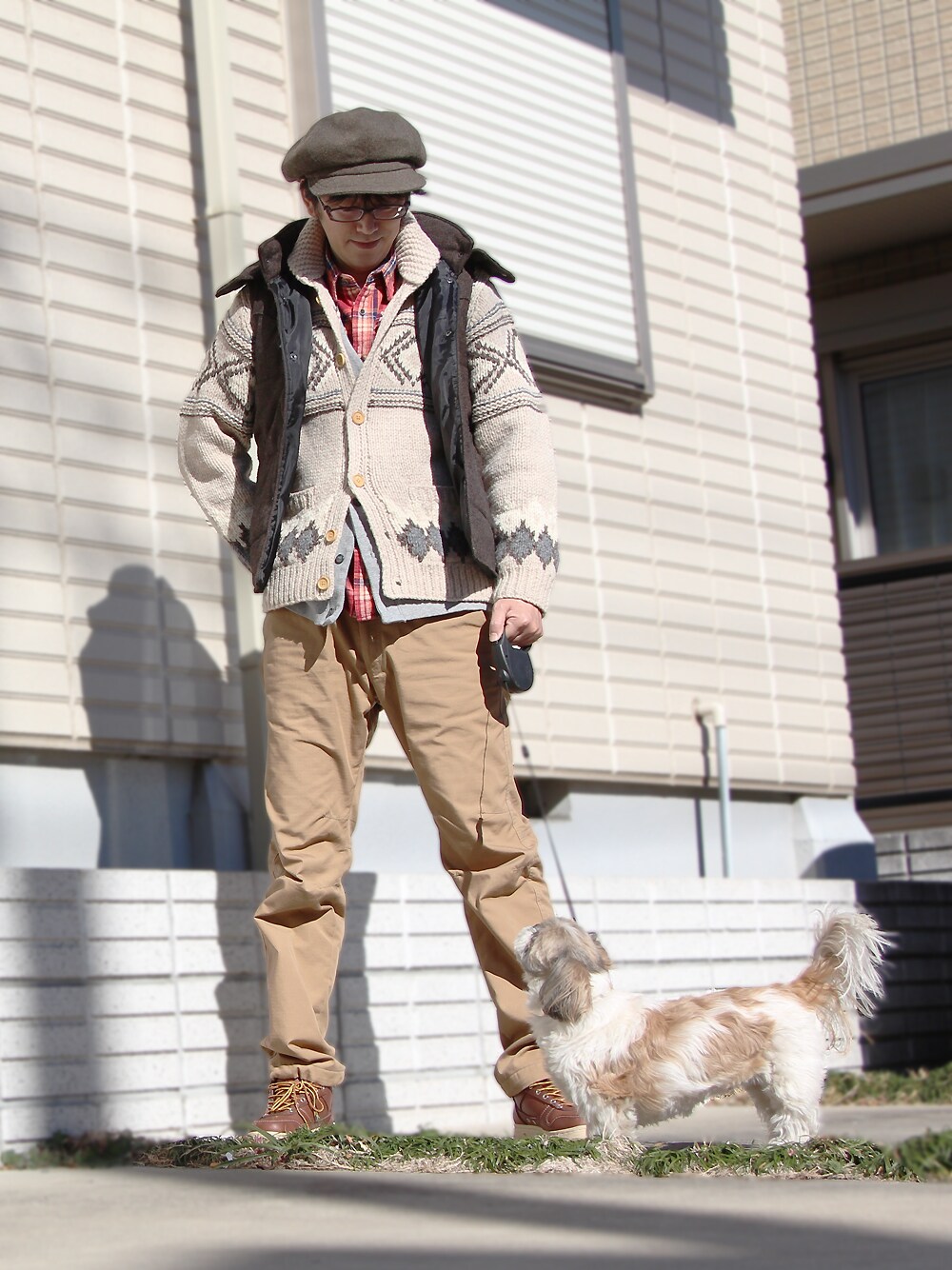 お散歩♪…といっても犬の散歩スタイル。 かなりオサレからはほど遠い。(;´Д`) けど、冬の散歩に欠かせなくなったのが、ユニクロのウォームイージーパンツ。 今までは暖パンってことで防風のデニムだけだったけど、このパンツは防風はもちろん、裏地も暖かい。 ってことで、風の強い日にも安心なのです。 シャカシャカしないし、2,000円なのでオススメ。(シルエットはあれだけど) 今朝は風が強いので、カウチンの下にスウェットカーデ着ているので着ぶくれしてる。