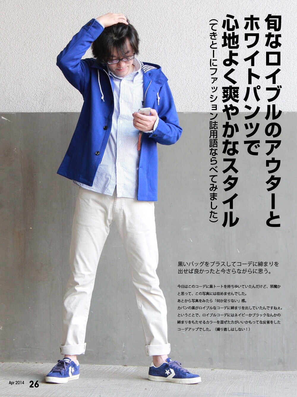 青白のコーデ。 写真の中にも書いたけど、手持ちのカバン(ブラック)を持って写れば締まりが出たかなぁと、写真を加工中に思ったコーデ。 髪の毛がボサボサだったので、ほとんどNGにしてもーた。