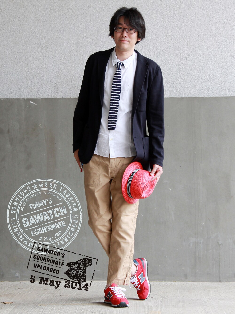 私服でのネクタイ初チャレンジ。 ニットタイって結びづらいし、シャツもリネンでヨレッとしているので、苦戦。 前後の長さも合わせづらく、えらく短い状態になってもーた。 やっぱ、ボーダーはマリンルックスの時だなぁ。 差し色の赤については… なにもいうなw 普通に革靴で落とし込んでおけば良かったわ…。