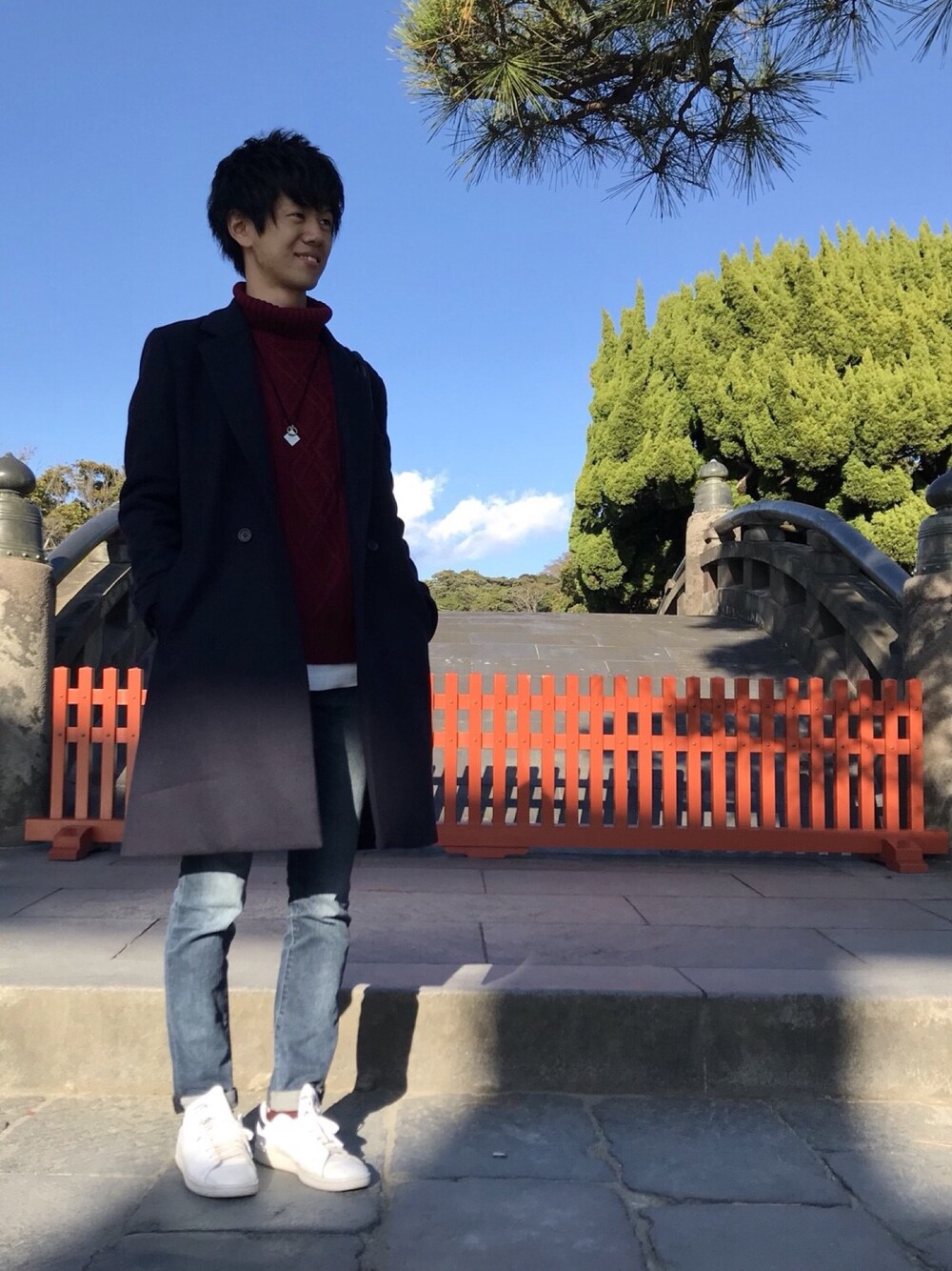 鎌倉行きました〜! 天気は良かったですが、風が強くて大変でした。。 ニットと靴下の赤をリンクさせてます