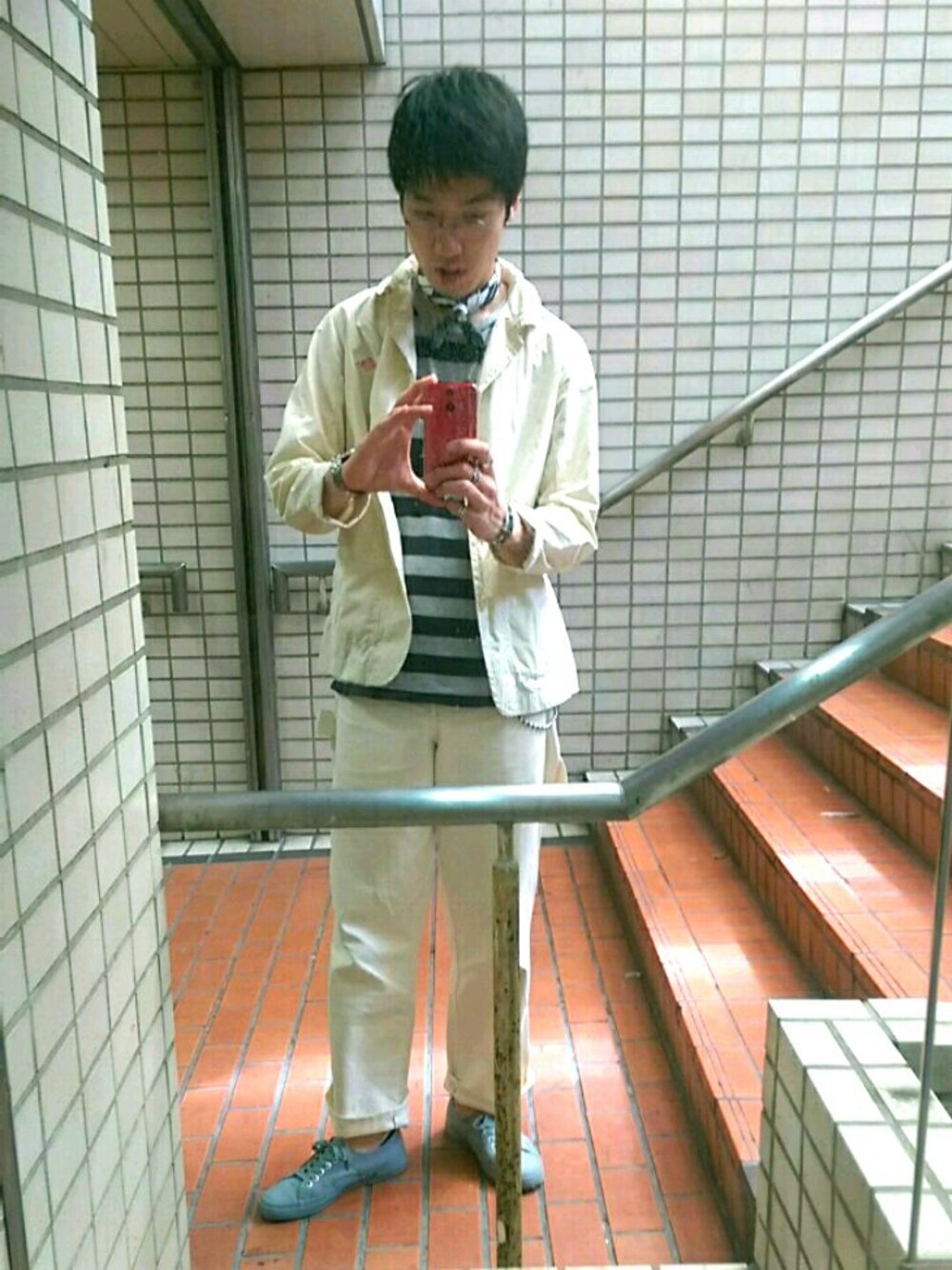 セール3日目は、モノトーンがドレスコードなので、白・黒・グレーで組んでみました。 なんか微妙なスタイリングになってしまいました(笑) ジャケット:DANTON インナー:used パンツ:POINTER シューズ:SPERGA 小物:ユナイテッドアローズ(バンダナ)