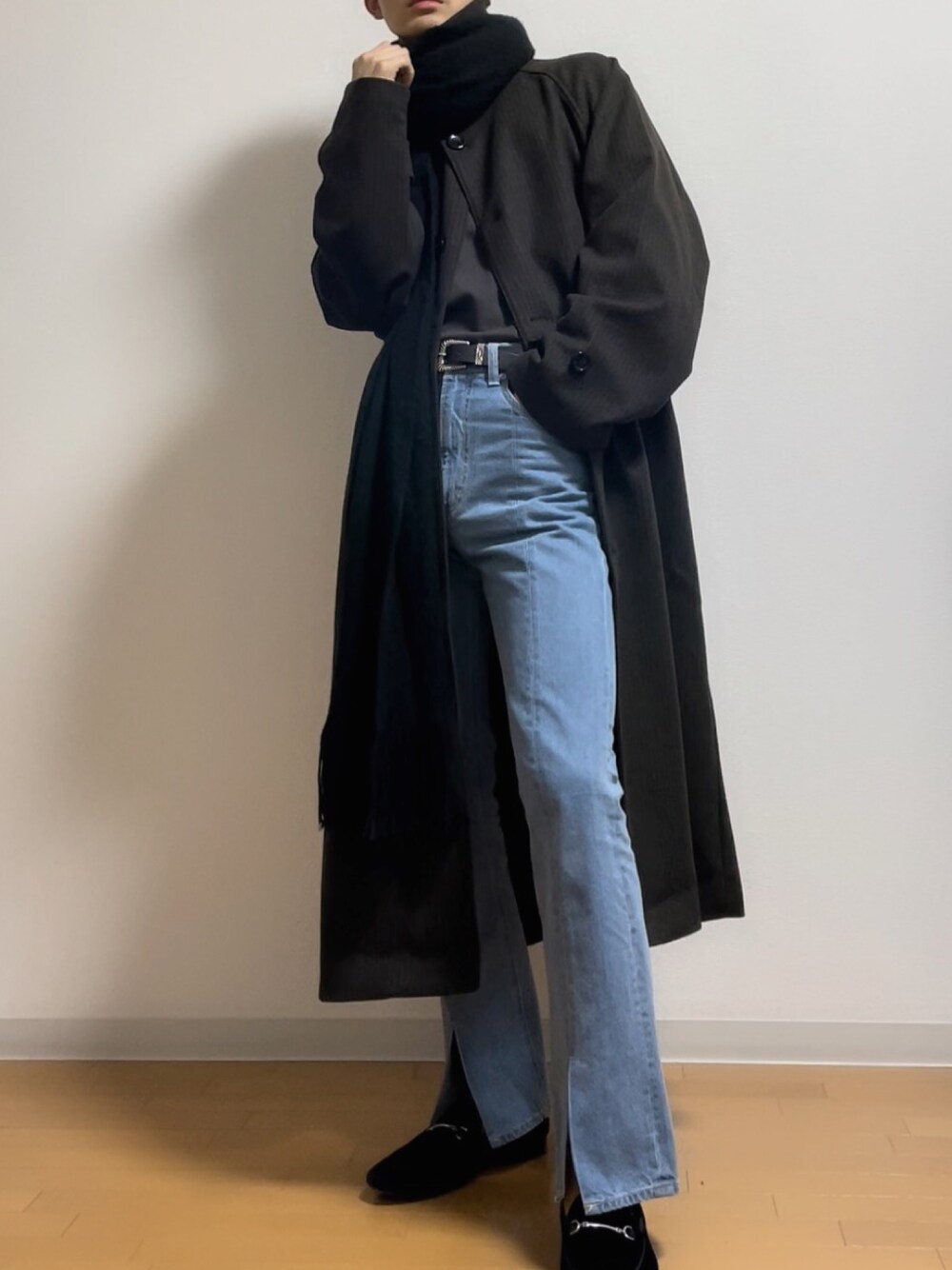 今年の冬はこれでしょ!!! 数多くのモデルをしている私的に来てる モードファッションはロングコートの上ボタン2つだけを閉めます! 中の服やベルト、パンツまで隠すことなくオープン状態に!!他の人とは簡単にオシャレの差が付けられるスタイルだと思います! マフラーを使うとよりモード感溢れますのでぜひ参考にしてみてください!🤝