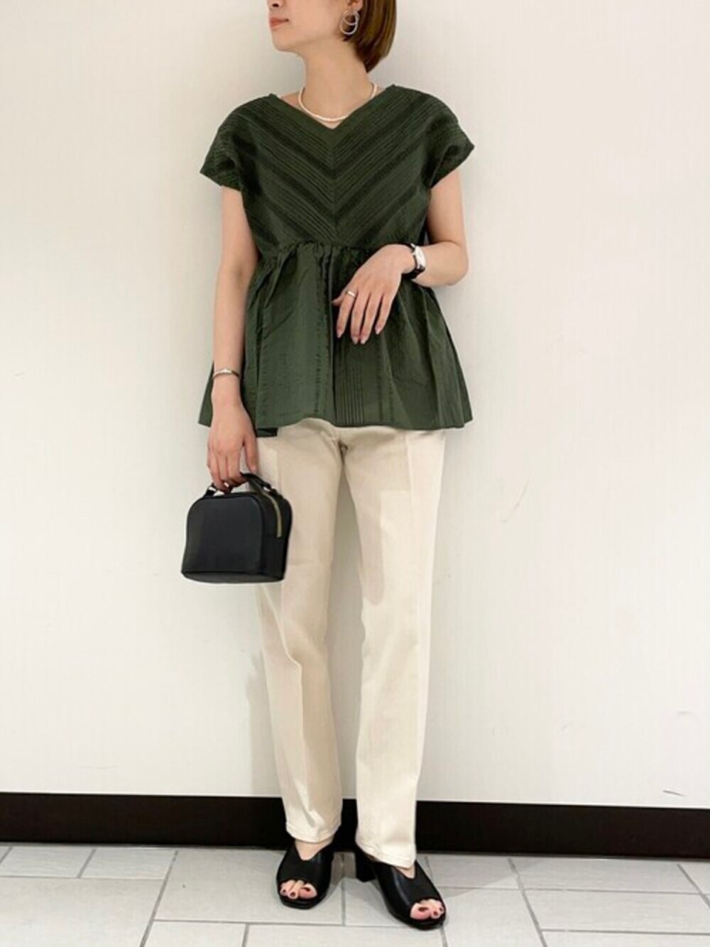 yamaのショルダーバッグ「ラウンド2WAYプチバッグ」を使ったコーディネート