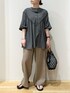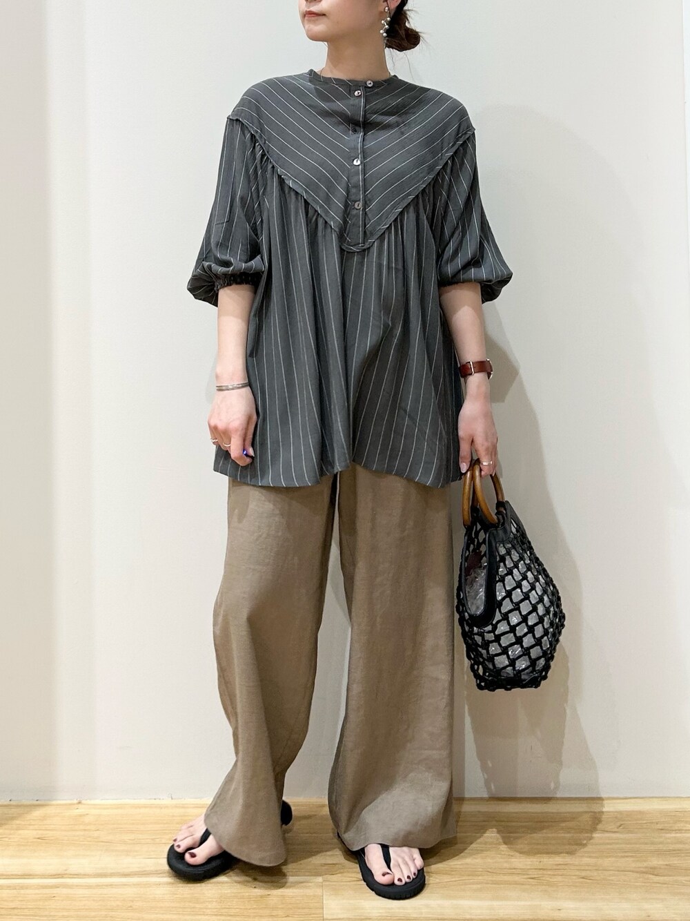 yamaのシャツ/ブラウス「ヨウリュウストライプギャザーブラウス」を使ったコーディネート