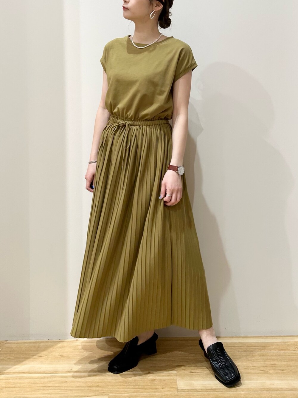 yamaのワンピース「ウエストギャザープリーツワンピース」を使ったコーディネート