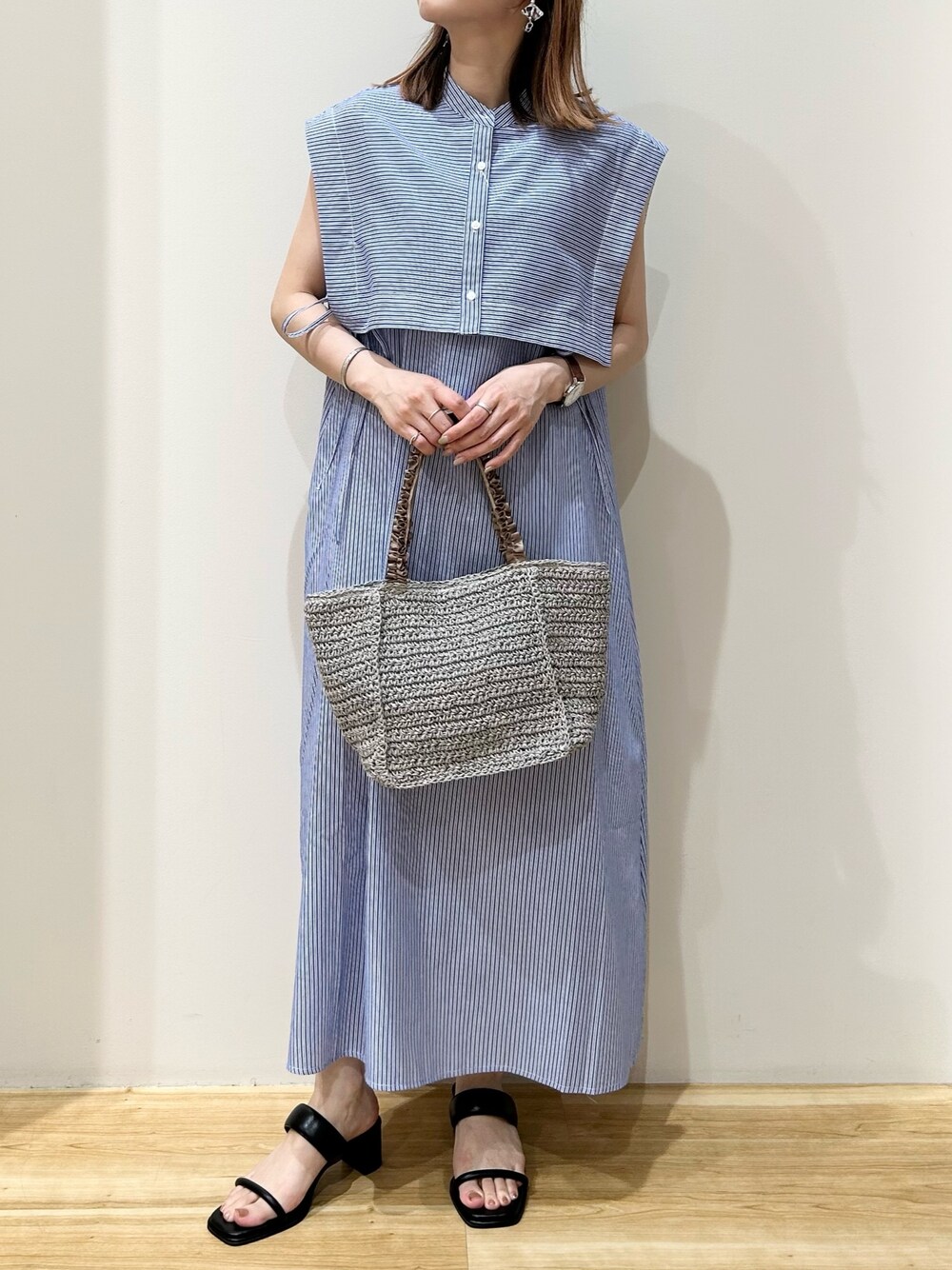 ブルーのストライプが爽やかな印象の ベストセットワンピース! ショート丈のベストなので スタイルアップ効果もありますよ^ ^ ダブルストラップのサンダルは 安定感も抜群でおすすめ! 太さが異なるストラップがアクセントに◎ お洋服を選ばず着回して頂けるので 是非GETされてください♪