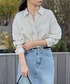 ちかさんコラボのZIPタイトスカート! 程よくゆとりがありラインを拾いづらいので、タックインもしやすい◎ 春らしくベージュコーデに。 スカート : PMサンプルサイズ着用(4cm丈が短くなります。)
