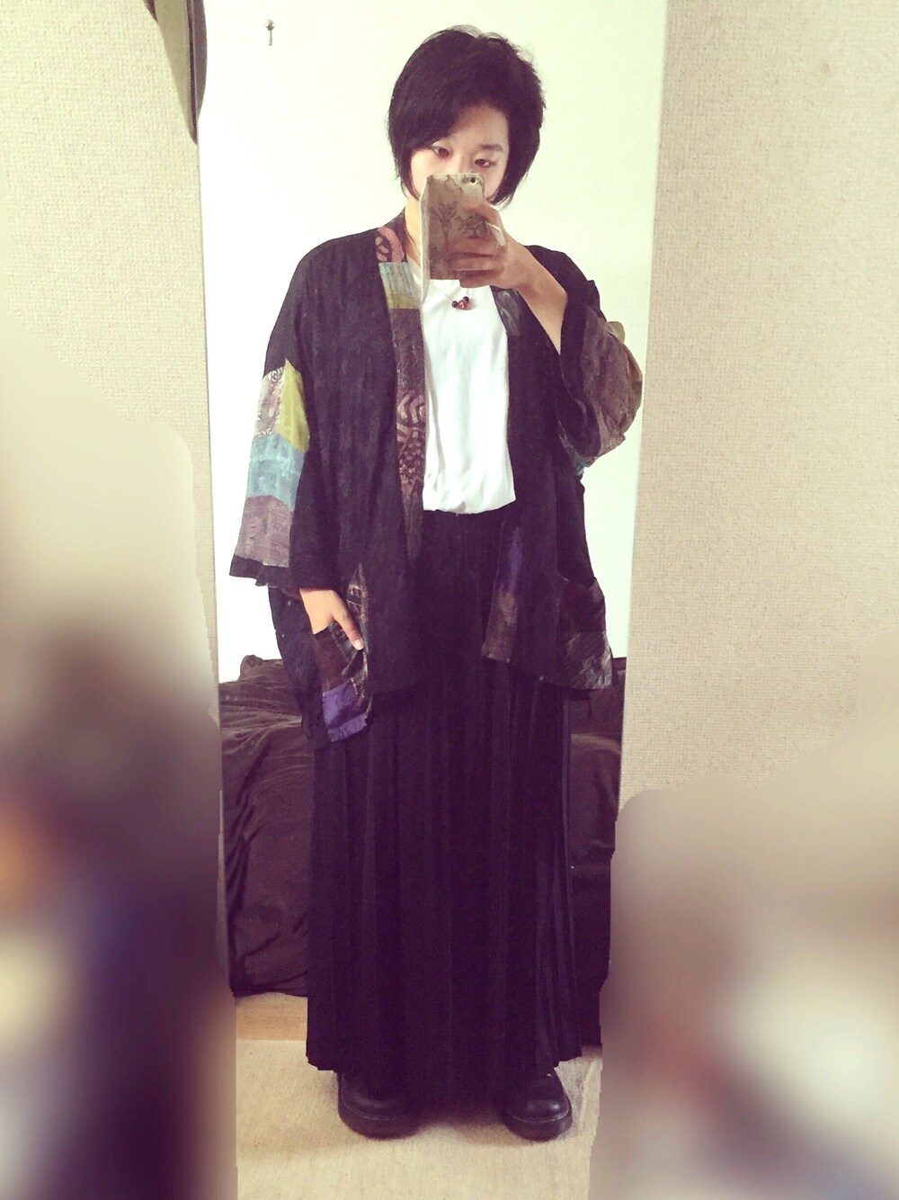 着物風羽織👘 パッチワークぽくなってて上から薔薇の透かし入ってて〜 最高! こんなんあるから古着が好き!お店に並べてくれる店員さんが好き〜 トンボ玉は中学の修学旅行とかで作った奴ダヨ 普通に使ってる笑 髪書き上げてみたけど、原チャで一瞬で崩れましたとさ。終わり。 バイトはちょいバタバタ、 色々買ったから作るぞ〜〜 鯖の味噌煮を作った。初めて魚を調理した。まあまあなお味🐟