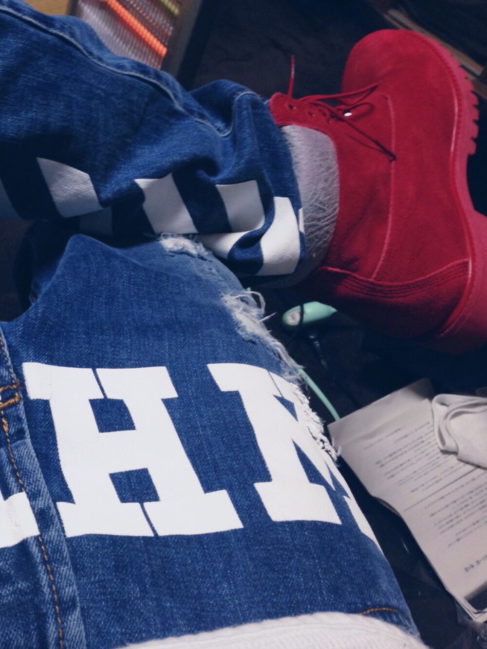 justinやgdragonか着用のoff-whiteにtimberは最高すね👍 撮影は部屋です笑