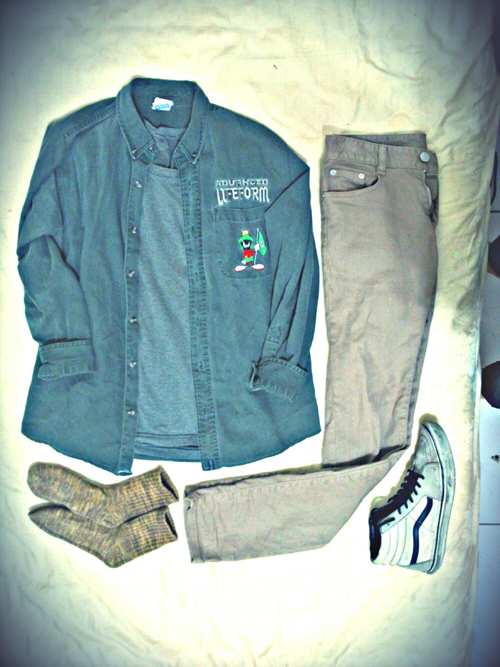 ベージュ系のその他シューズ、イエロー系のソックス/靴下を着用したメンズの秋コーディネートの1枚目の写真