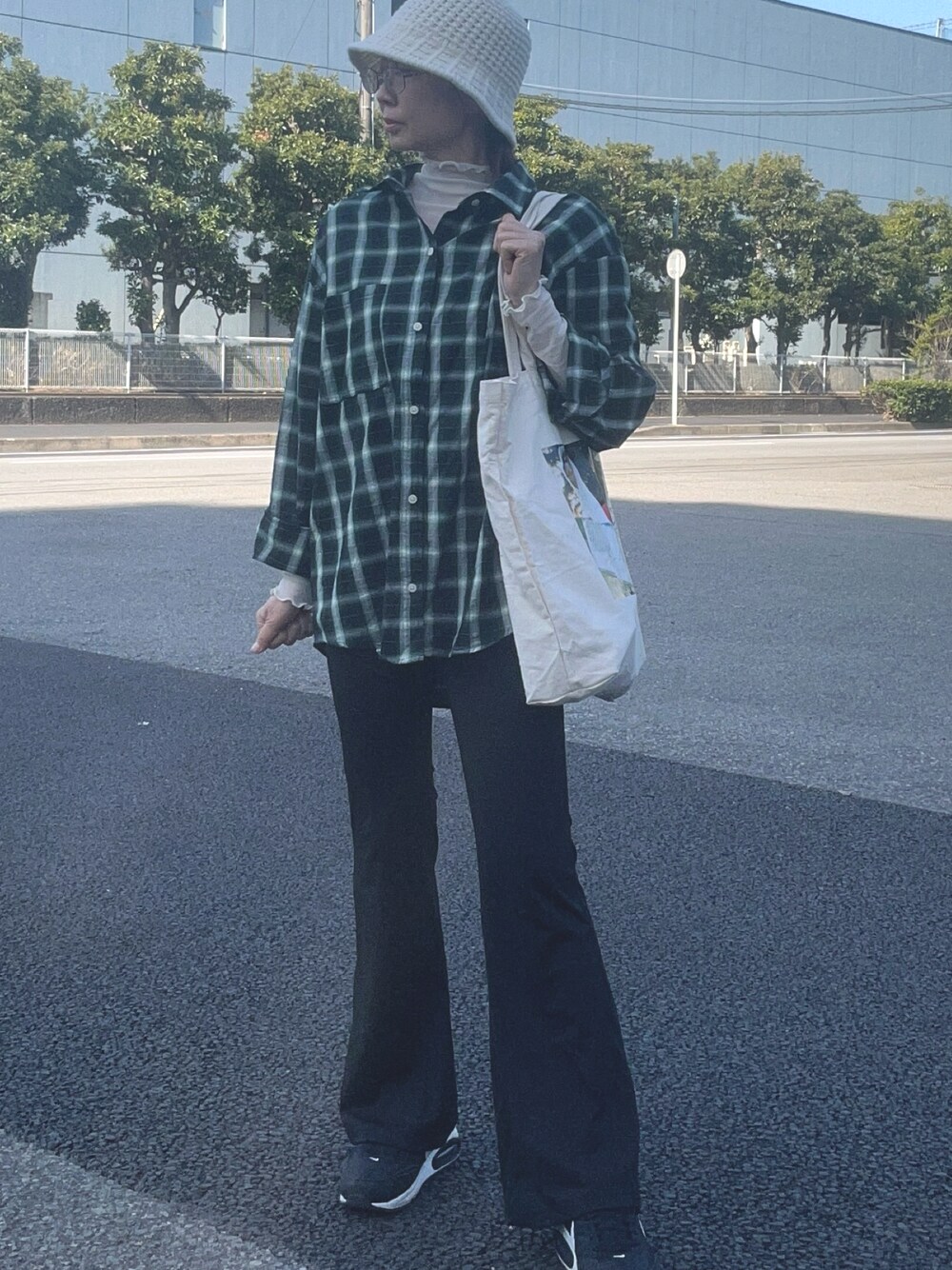 gee のシャツ/ブラウス「オンブレチェック レギュラーカラー ネルシャツ」を使ったコーディネート