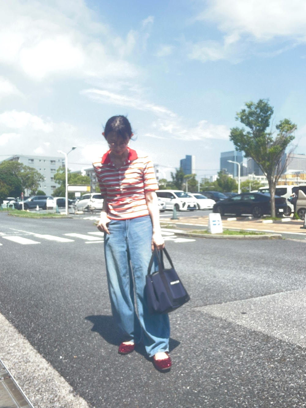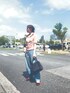 gee のデニムパンツ「今旬のマストアイテム!トレンド感抜群。コットン100%アシメウエストカーブデニムパンツ」を使ったコーディネート