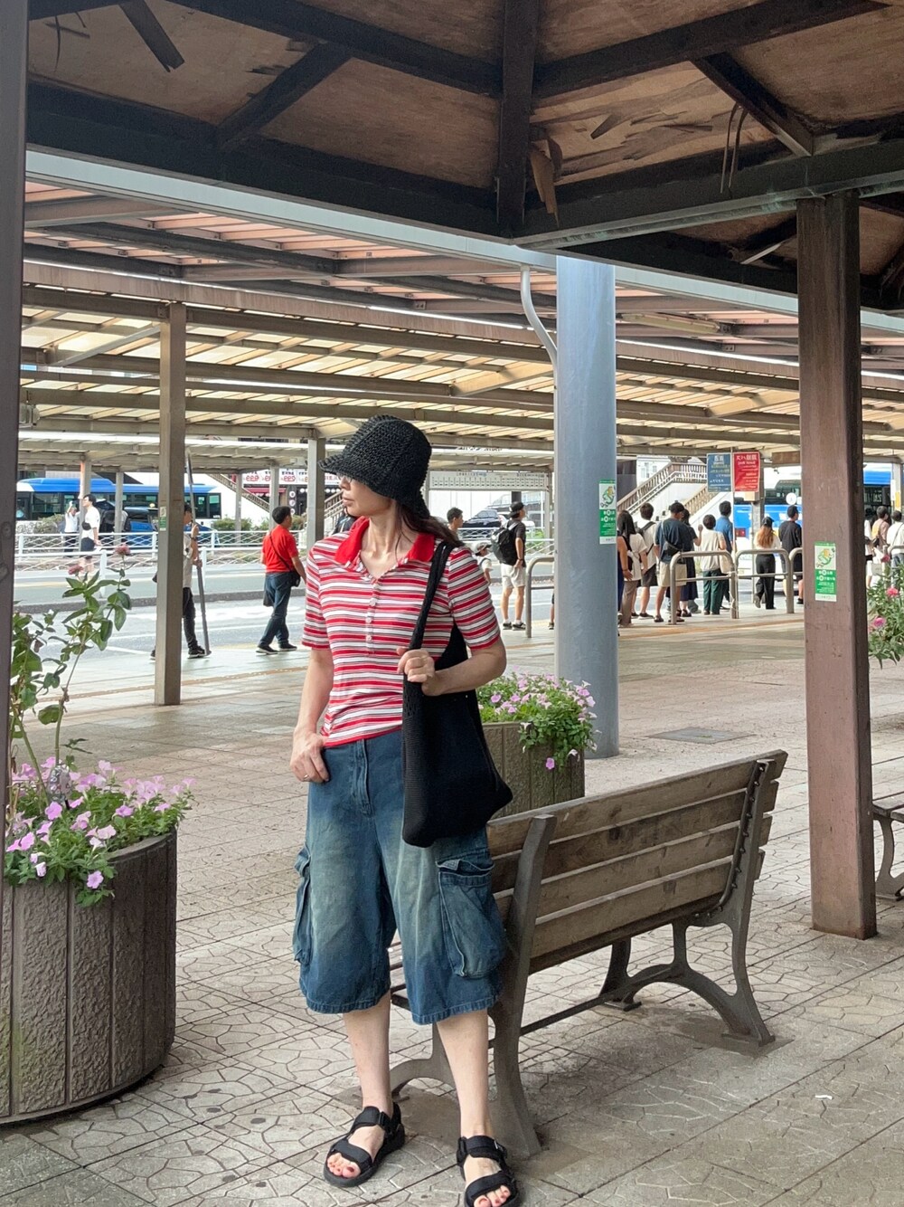 gee のデニムパンツ「ユニセックスカーゴデニムハーフパンツ【ZOZOTOWN限定アイテム】」を使ったコーディネート