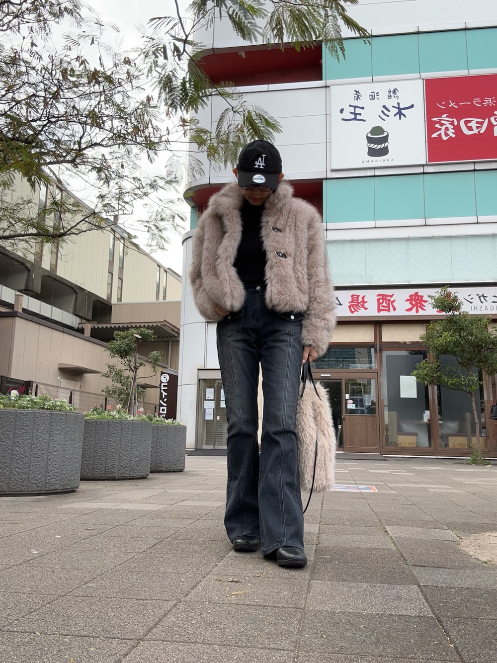 gee のブルゾン「【mily bilet】上品さと華やかさを纏う 2wayレザーバックル使い フェイクファーブルゾン」を使ったコーディネート
