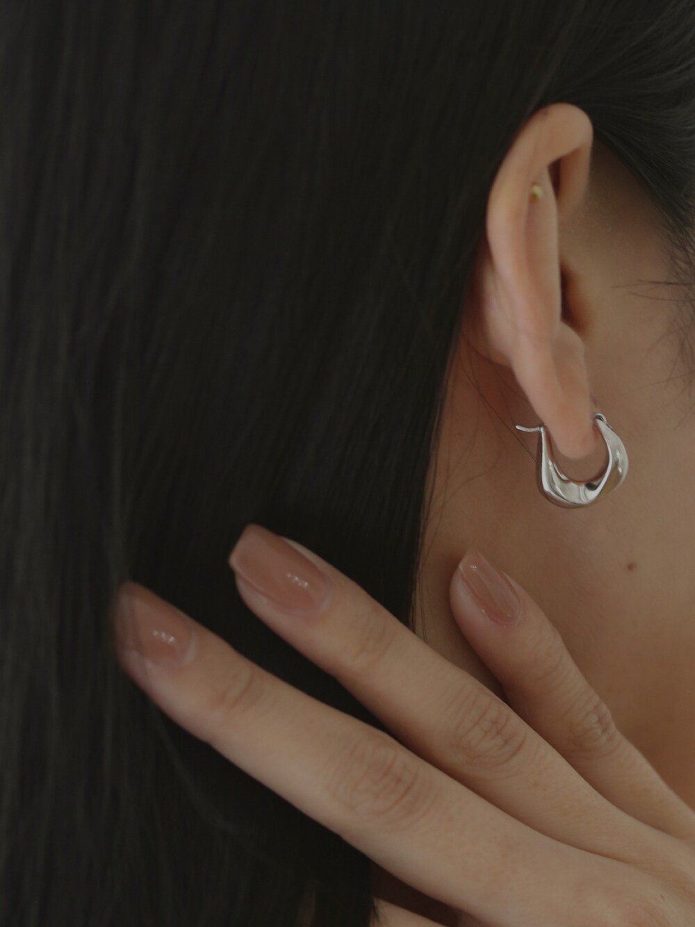 ご覧いただきありがとうございます🎶 つけた時のバランスが絶妙な小振のフープピアスです。 厚みのあるデザインは、存在感もありつつ 女性らしい上品な印象も与えてくれます。