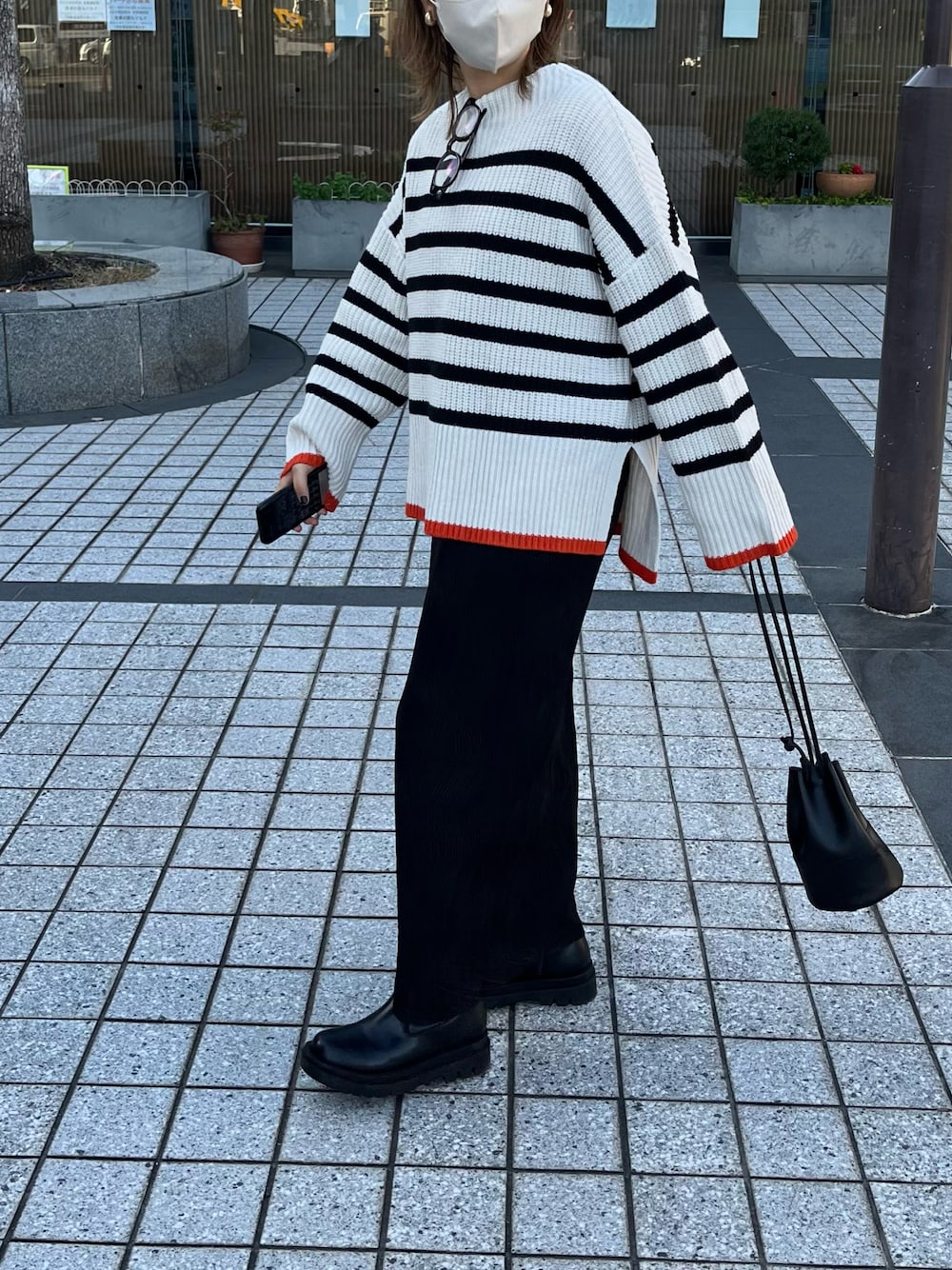 GeeRA(GeeRA)のニット/セーター「ハイネック配色使いボーダーニット」を使ったコーディネート