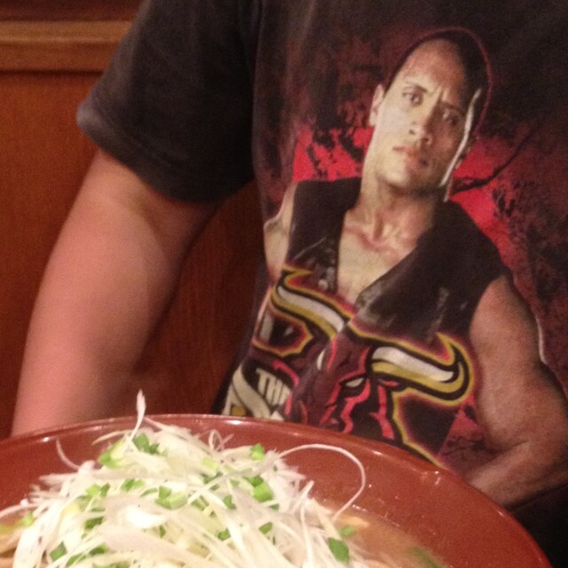 画像を変えました。 ラーメン越しのザ・ロック。 我らがピープルズ・チャンピオン。 イカす。