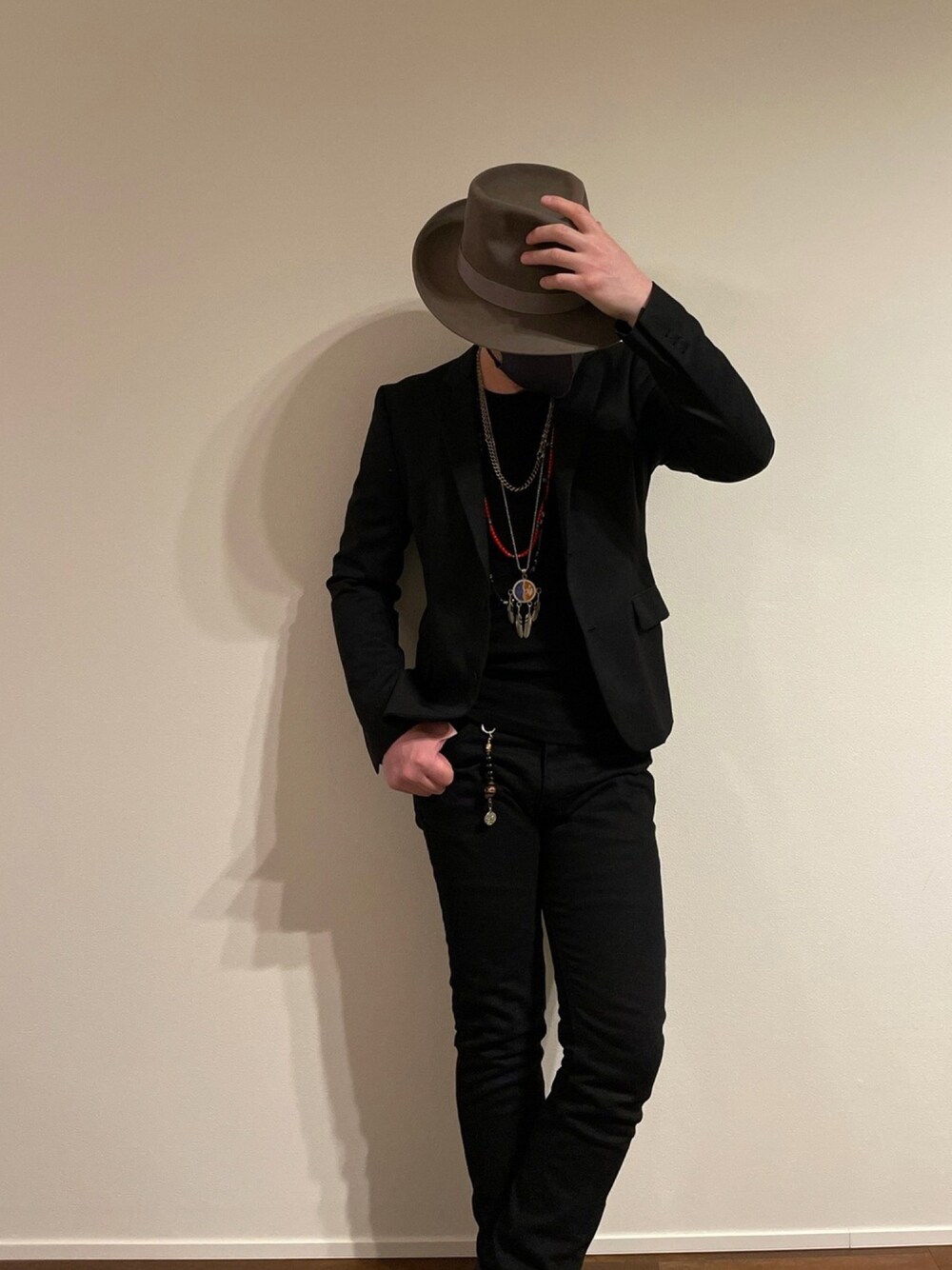 今回はオールブラックコーデです✨ ポイントはアクセサリーとジャケットとパンツをタ イトに合わせたところです✨では。