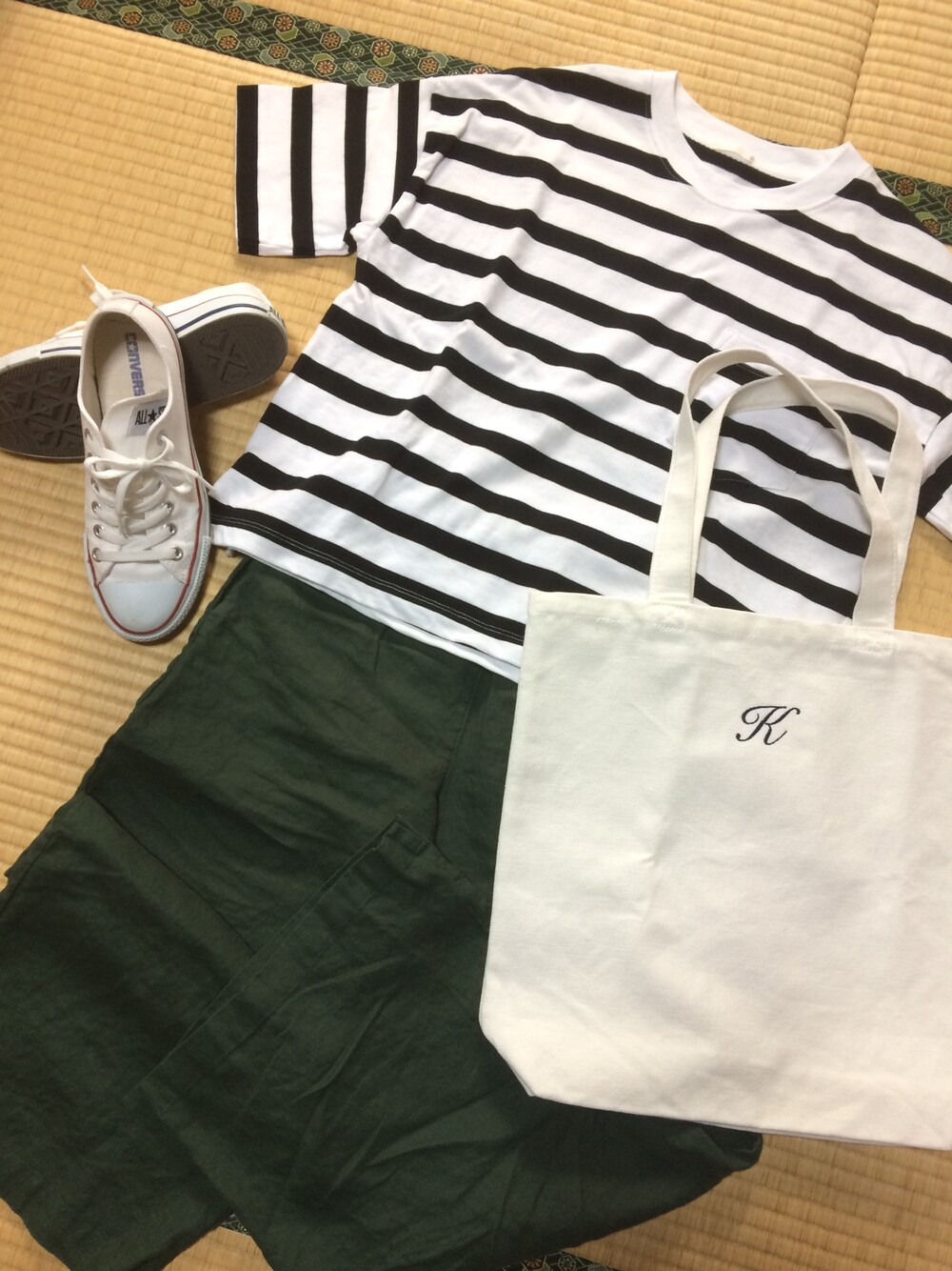 今日は天気もよかったんで、散歩がてらにブラブラ(*゚∀゚*) 近所の野菜屋さんで、今年初スイカ🍉ゲットしました✨ 買うつもりではなかったんですけど、なんかついつい買ってしまいましたf^_^; たまには旬なものを食べるのはいいですね♪ …… 仕事も休みなんで、楽チン&ラフがテーマ(´-ω-`) ワイドパンツはウエストがゴムなんで、すごい楽チンです❤️