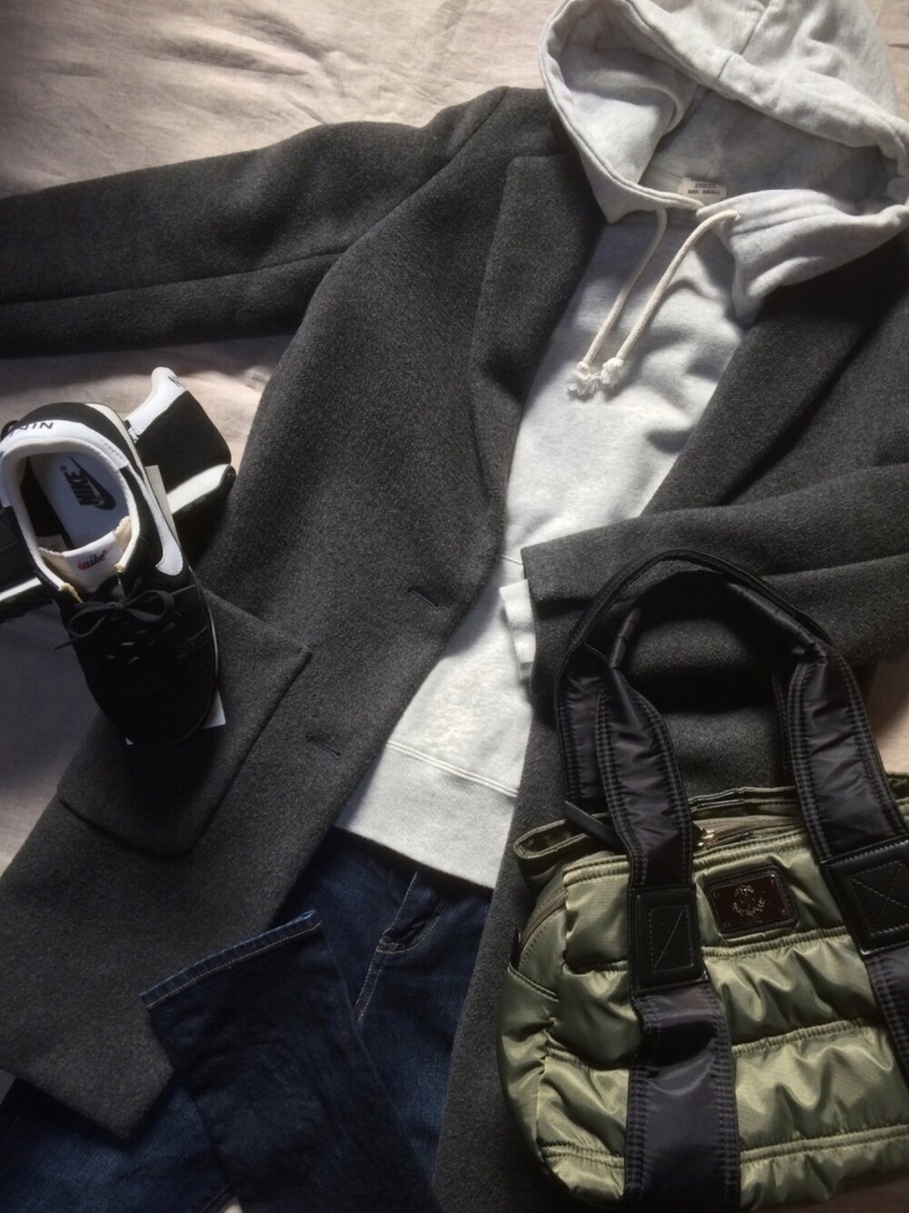 ☆チェスターコート×パーカー×デニム☆ メンズっぽい組み合わせ🎵 結構好きだなぁー(о´∀`о)
