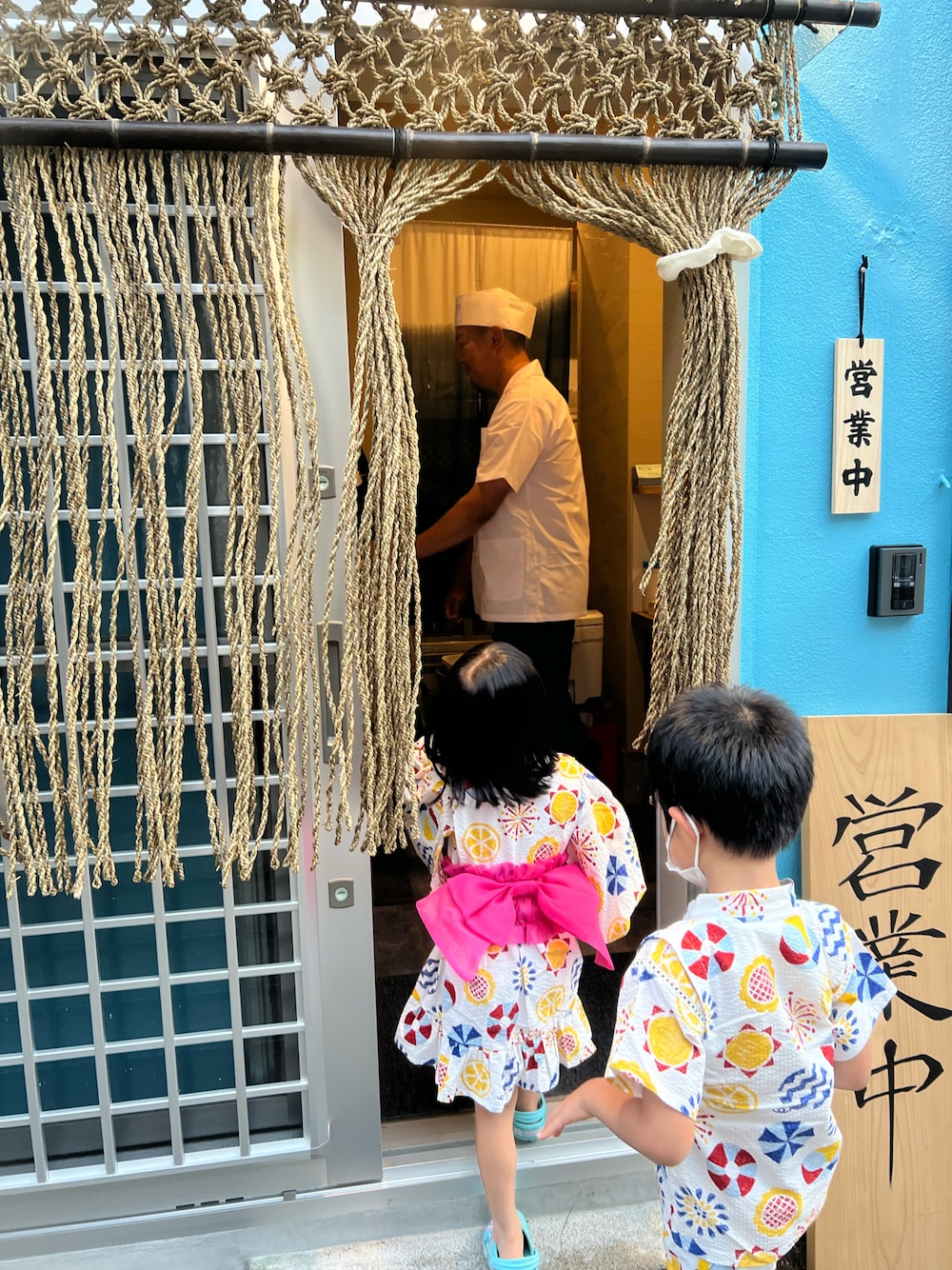 ホワイト系の浴衣を着用したキッズの夏コーディネートの1枚目の写真