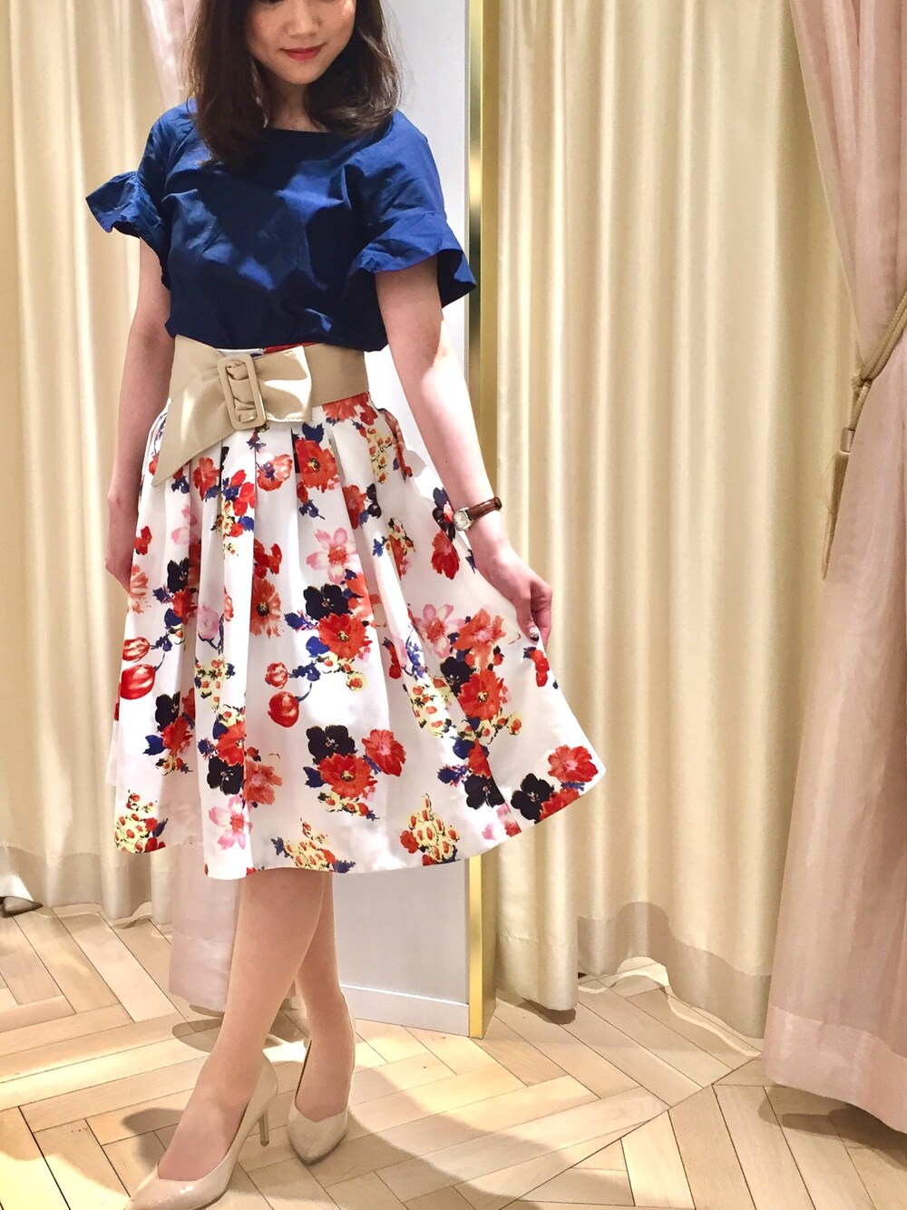 赤の花柄で華やかさがあり、今からの時期に向けて気分明るく着れます💖 丈も長めで軽く、ハリ感があるので品よく見えます(^ ^)